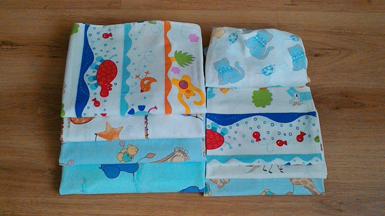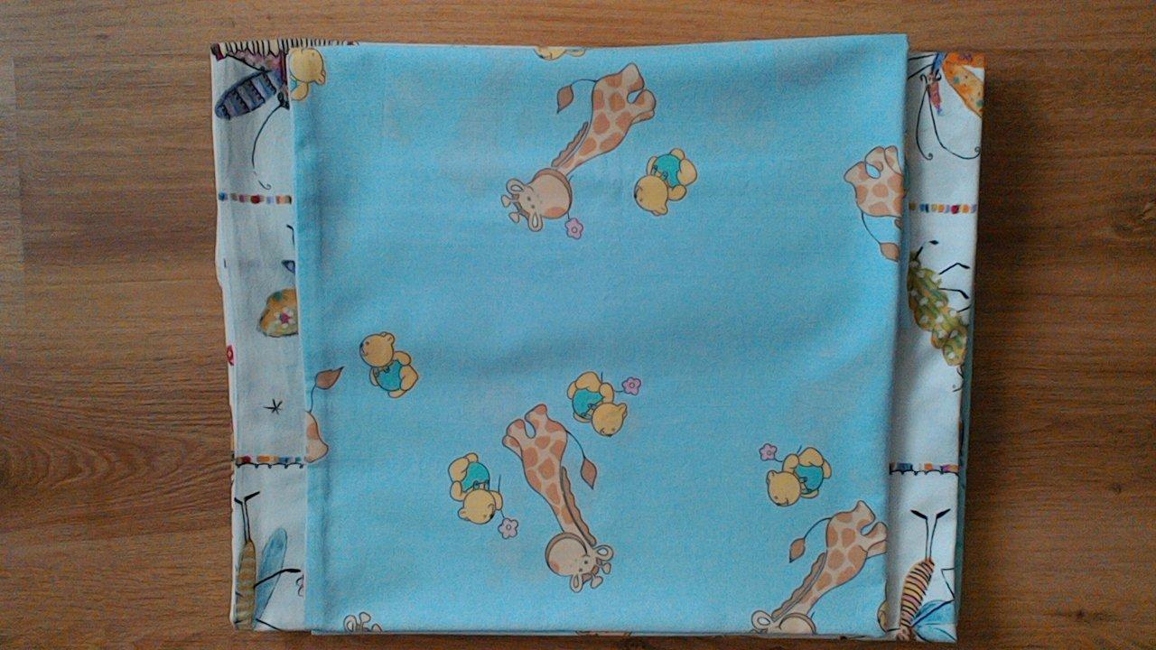3. Obliečky żirafkové, zákl. farba bledomodrá, málo používané. 130 x 85 cm, 43 x 63 cm, 5 €