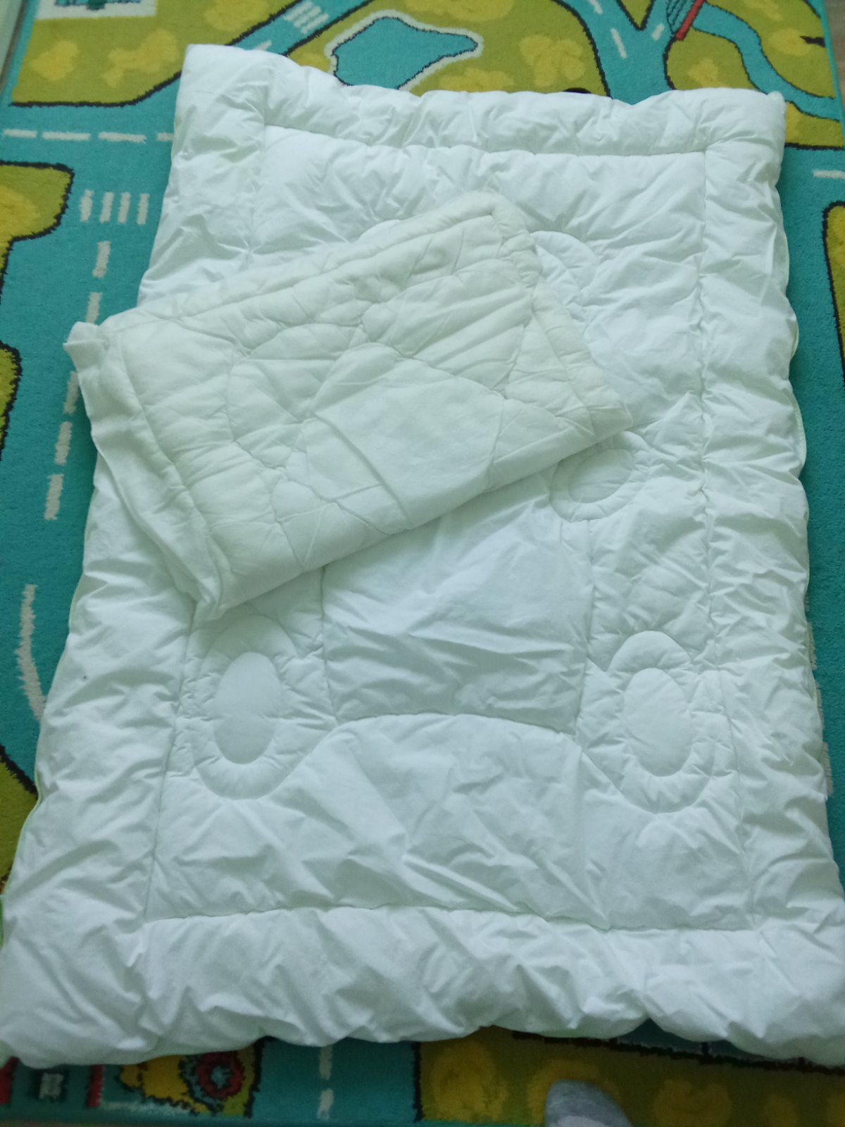 Dobrý deň predám paplón s vankúšom a obliečkami... Používali sme ich v škôlke... Paplón rozmer 90x130cm , vankúš 55x45, k tomu 3x obliečky s plachtami a ešte 2x žlté platchy (doma šité) ... Cena sp...