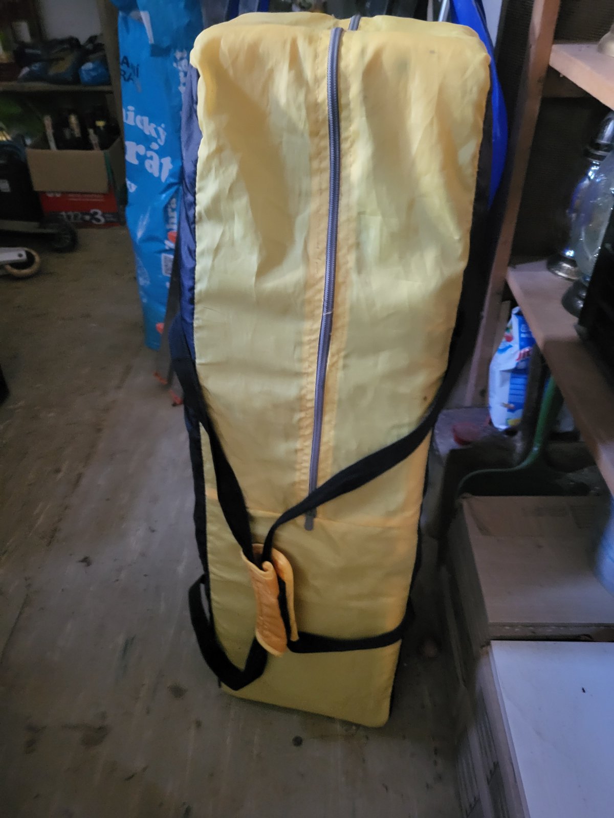 Postieľka ma 2 kolieska (dá sa zložená ťahať ako kufor) a chybičku krásy na sietke (zasite dierky) a škrabanceky na obale (všetko je na foto).