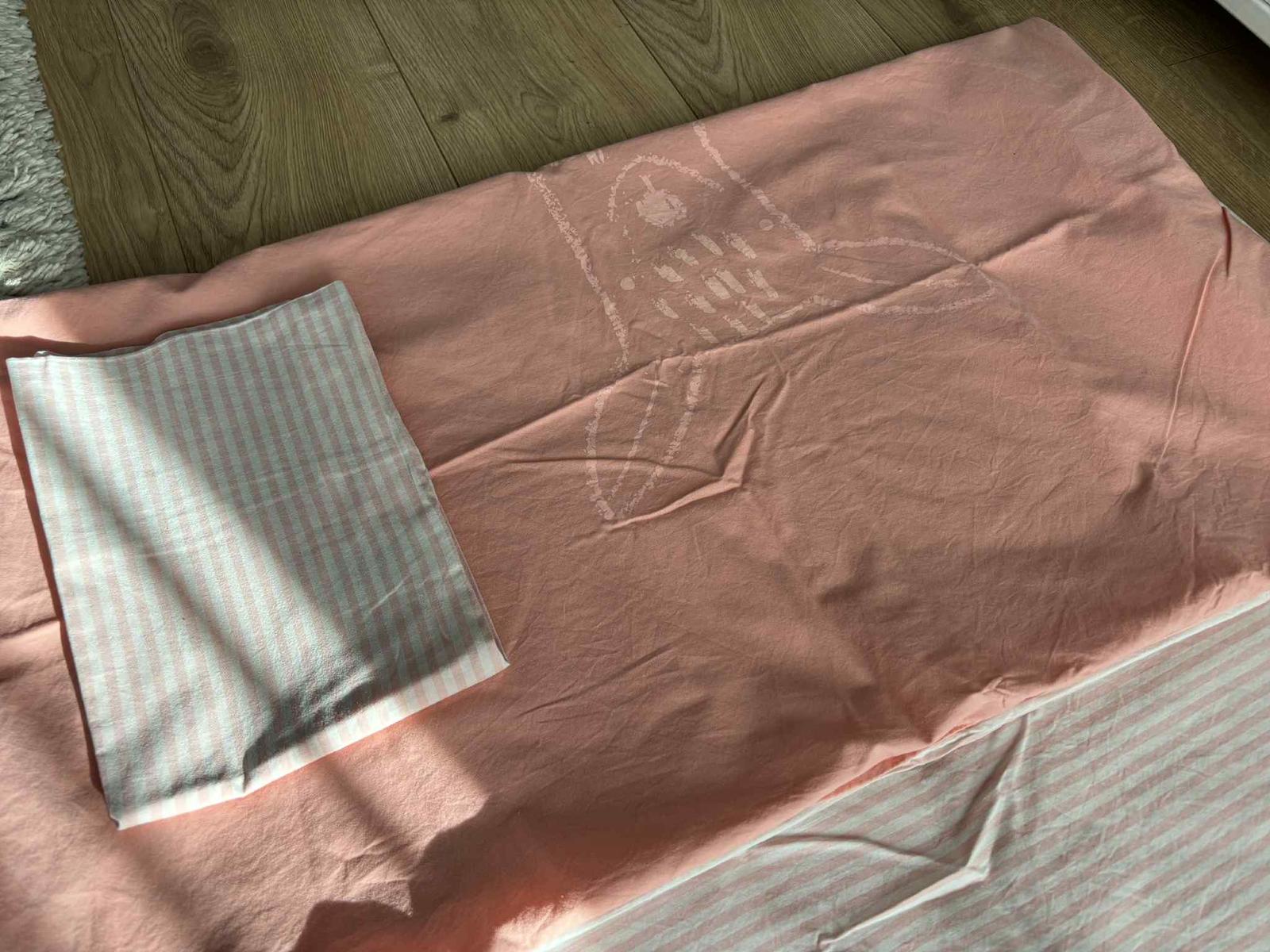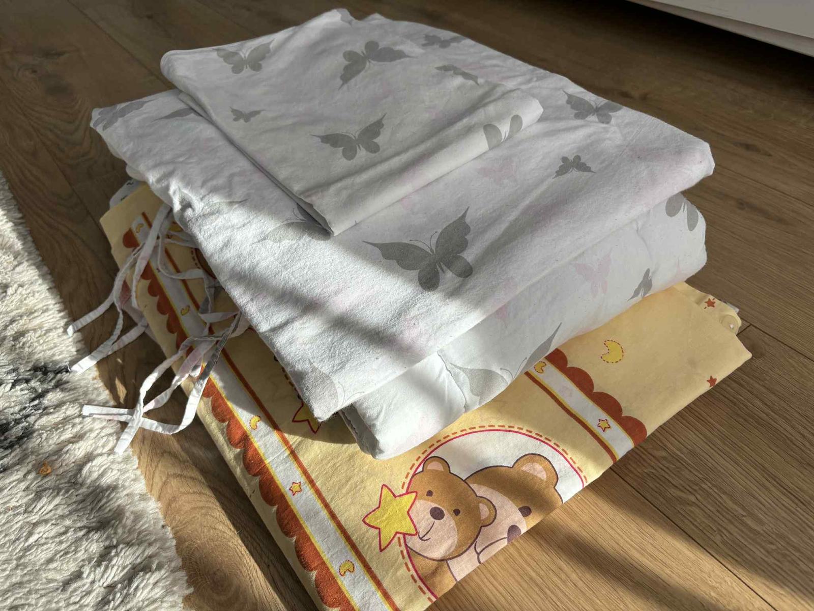 Postelné prádlo na detskú postel, 5€ sada. ( cca vankúš 57x40cm, perina 125x85cm)