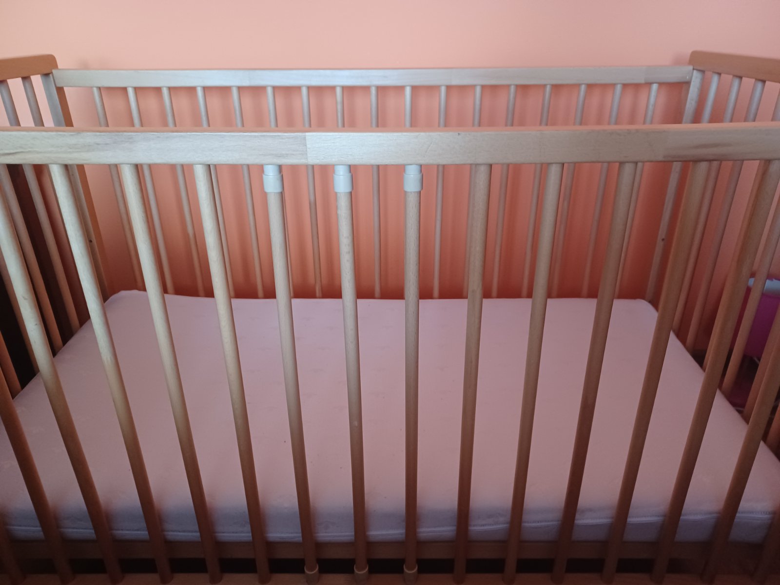 Predám detskú postieľku z bukového dreva vrátane obojstranného matracu. Postieľka ma rozmery 120x60 cm. Matrac má poťah, ktorý sa dá odzipsovať a oprať. Matrac je bez akýchkoľvek fľakov a poškodenia. Postieľka bola veľmi málo využívaná, nakoľko dieťa v nej skoro vôbec nespalo, spinkalo so mnou vo veľkej manželskej posteli.