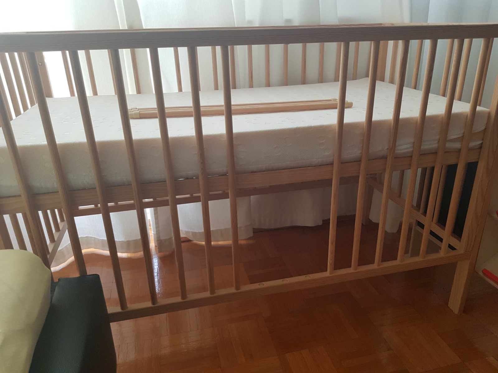 Postieľka má nastaviteľný rošt do 3 polôh a obsahuje vyberateľné priečky na bočnej strane.