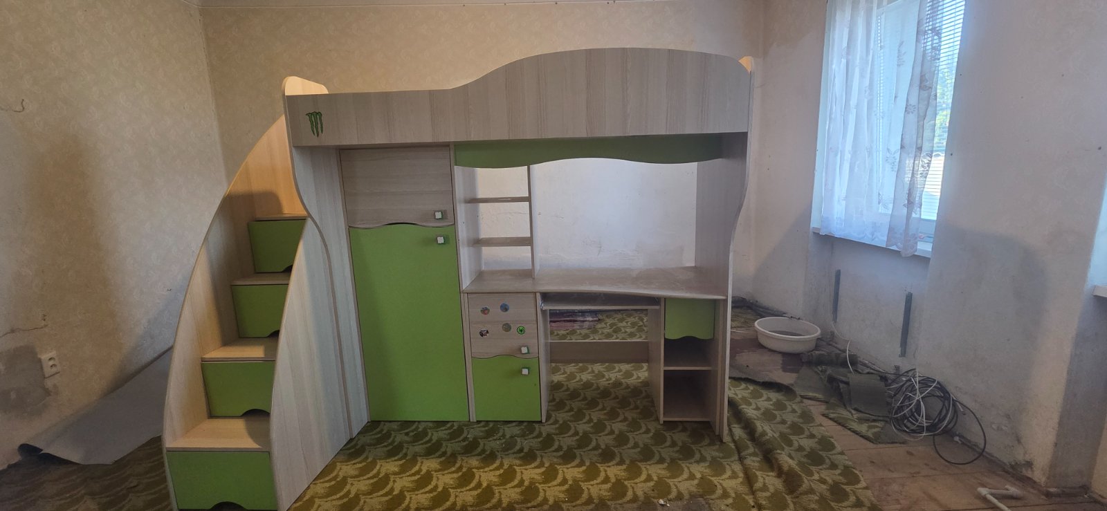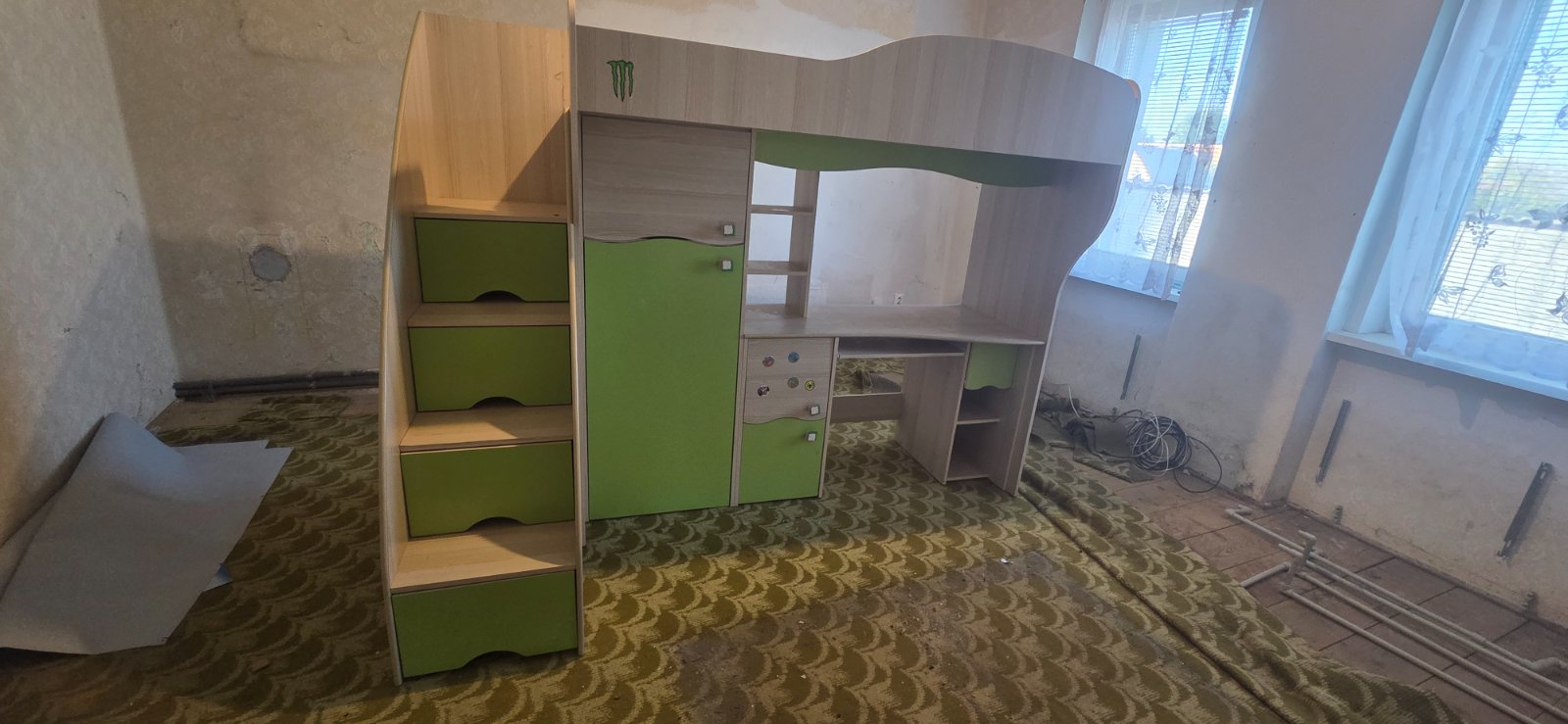 Predáme málo používanú detskú posteľ bez matraca v TOP stave...výška postele je 180cm, dĺžka 240cm, šírka pri schodoch 121cm a pri stolíku 76cm...