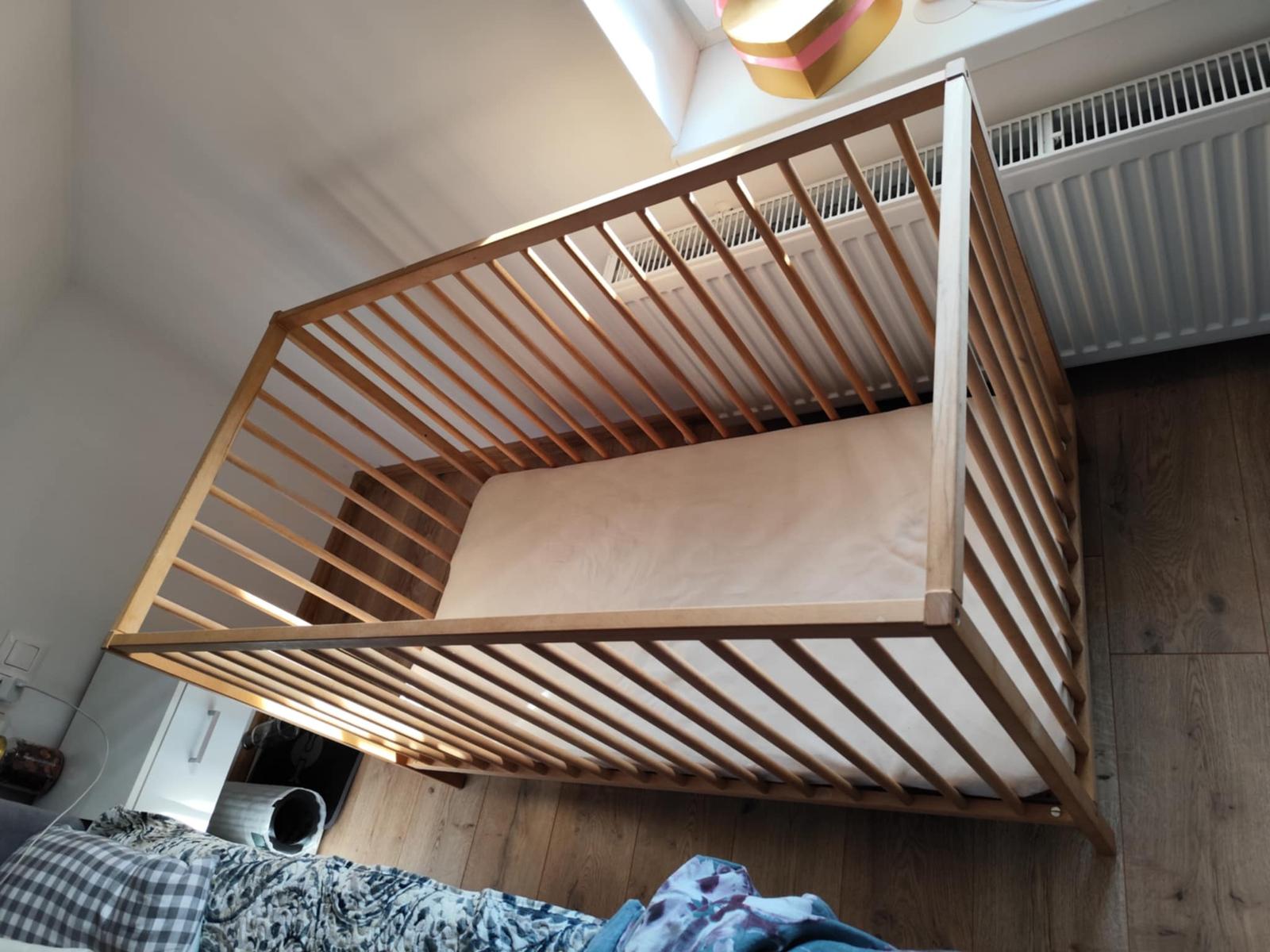 Predám postieľku s matracom , vankúš perinka ,plus pridám mantinel , ak by bol záujem aj slabo modré plachty a jedny obliečky slabo modré s oblacikmi .