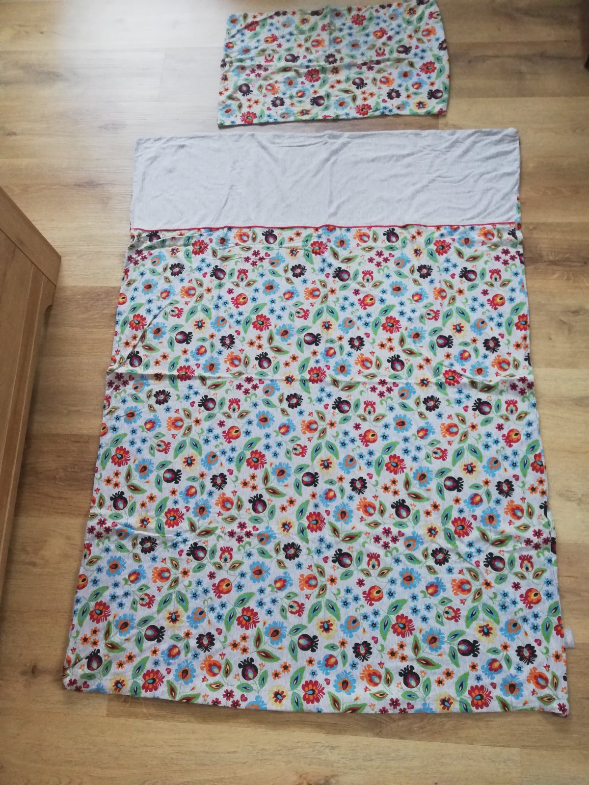 Predám krásne bavlnené obliečky s ľudovým motívom,rozmery :vankúš - 38x59cm,perinka-133x97cm.,zapínanie na zips+nepremokavá podložka