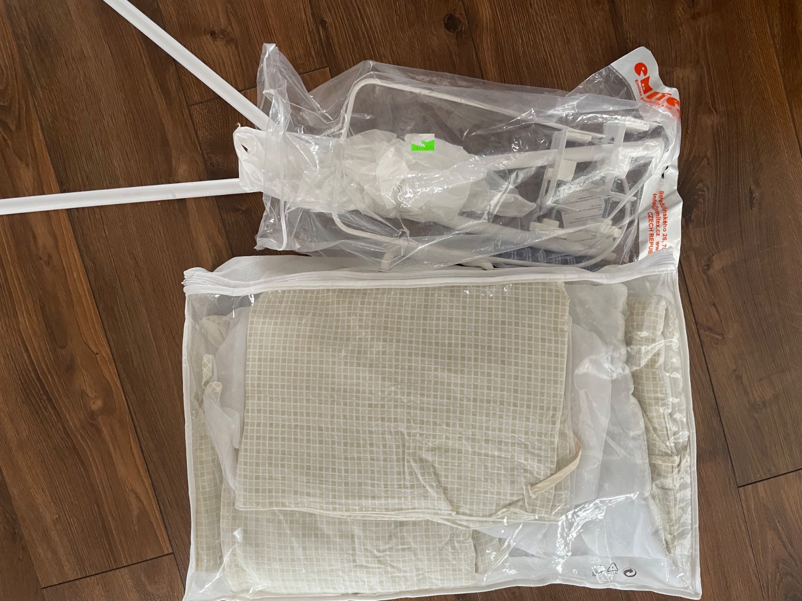 Držiak na baldachin 3€ Feretti baldachin pôvodná cena 26€ Feretti 5 dielna súprava ( špeciálny antialergický paplon + vankúš, obliečky, hniezdo dookola postieľky + navlek) pôvodná cena 114€ Pred...