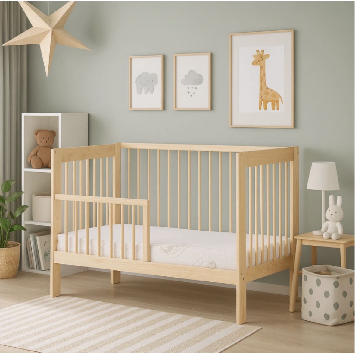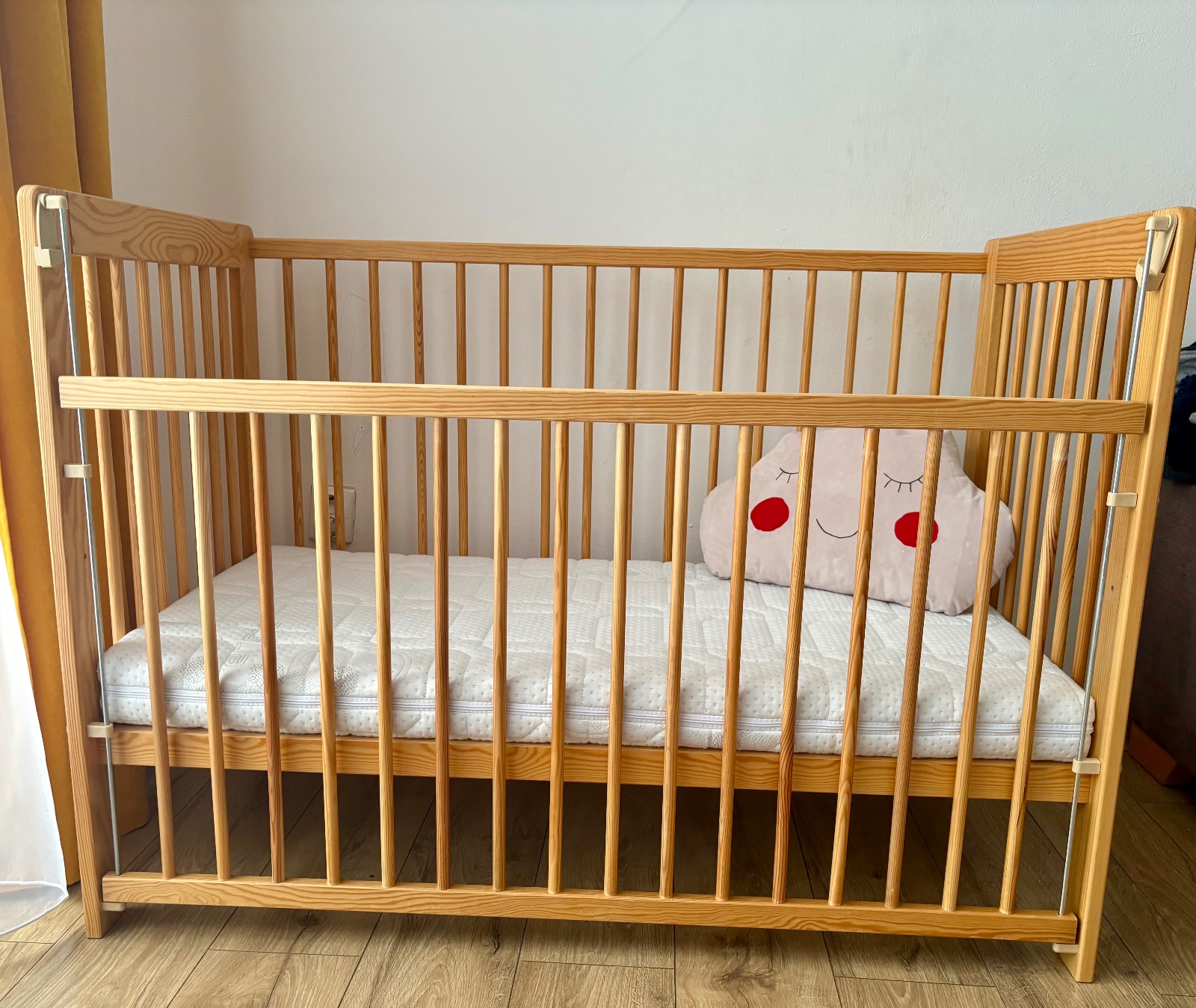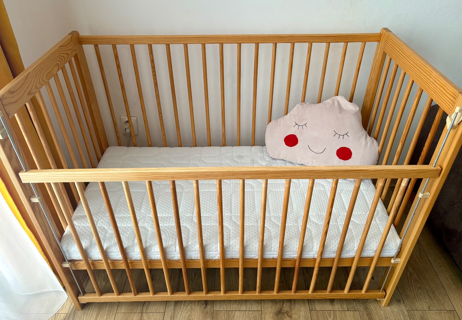 Detská drevená postieľka z masívu poslúži novorodencom aj batoľatám, dá sa nastaviť do 2 polôh a bočná strana je sťahovacia,