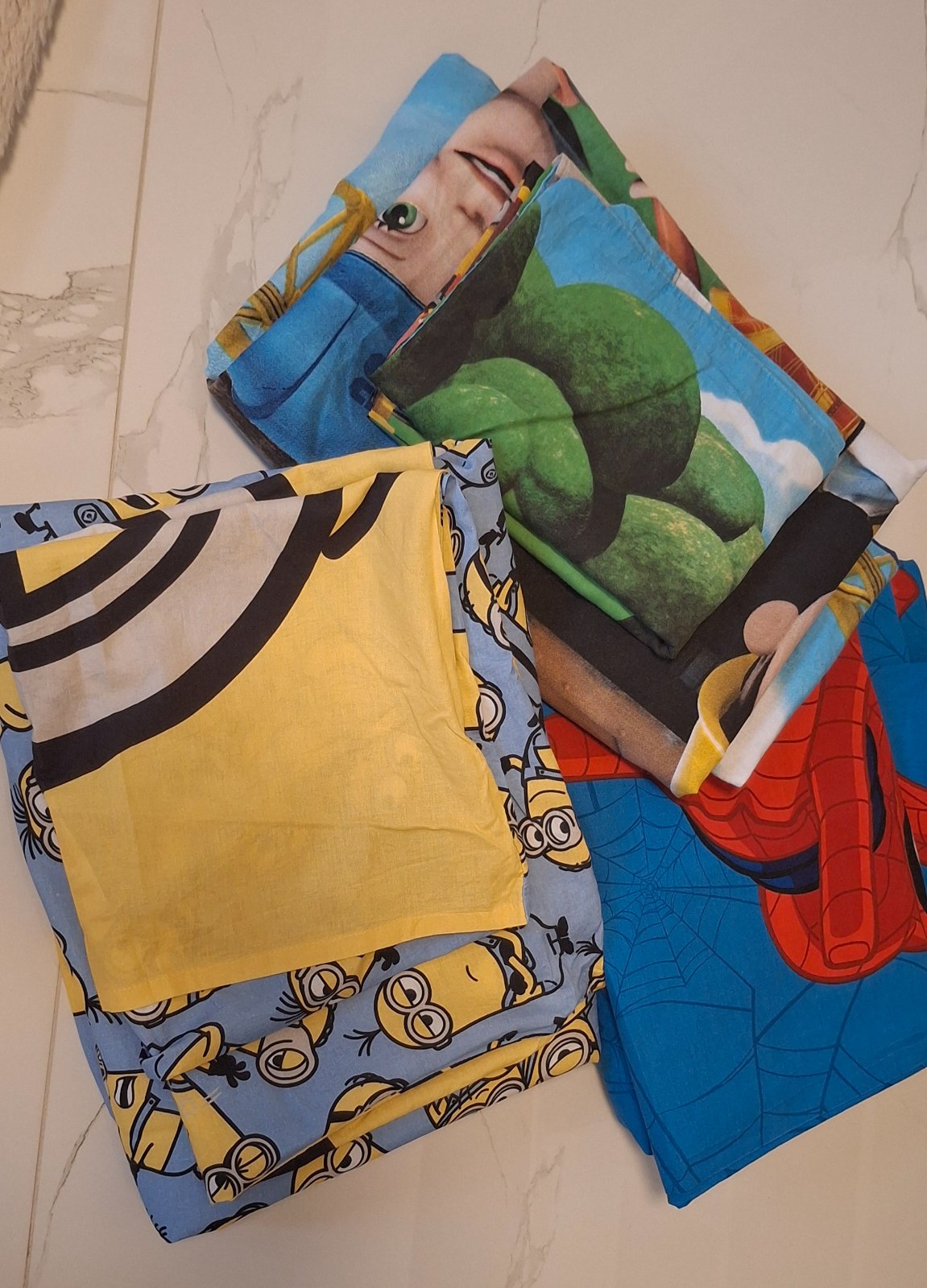 Predam obliecky pekný stav,mimon a spider man a bob stavitel.je to na klasický paplón 140x200 len mimon ma vankúš menší rozmer nie klasicky.cena spolu
