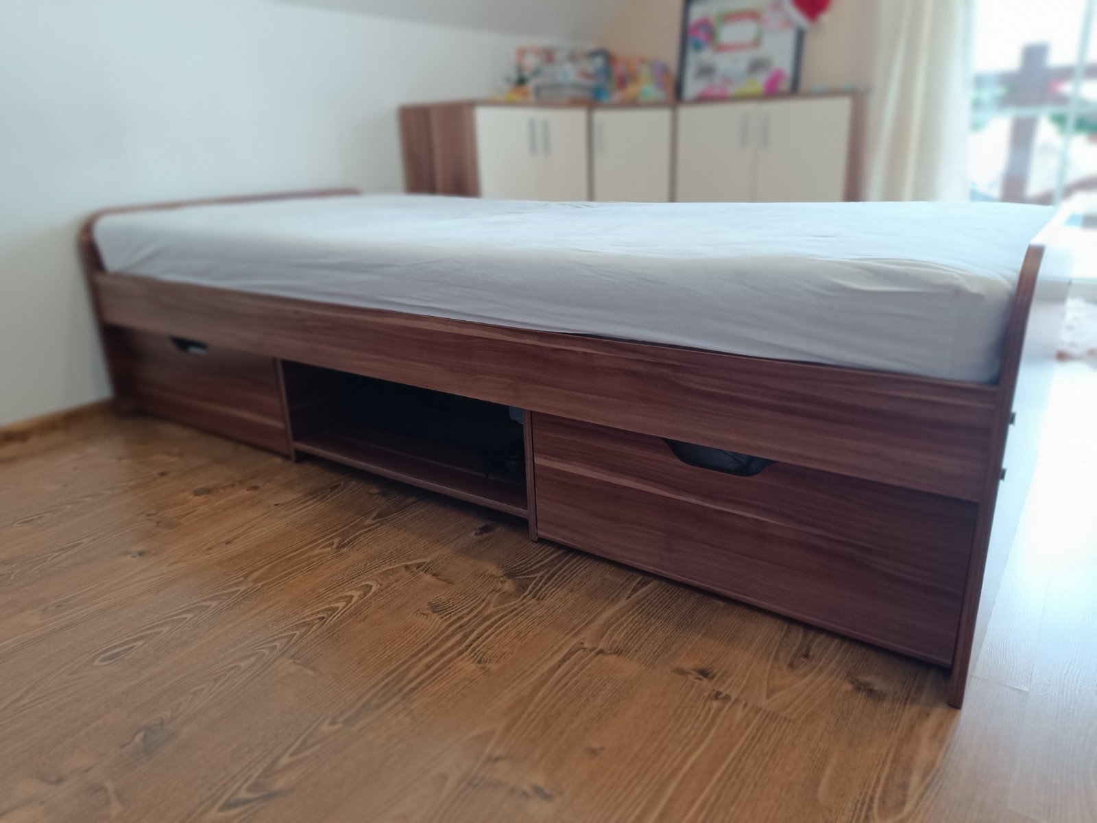 Posteľ a rošt, 2 šuflíky a 1 polička. Matrac ešte poslúži. Len osobný odber, okr.Prievidza