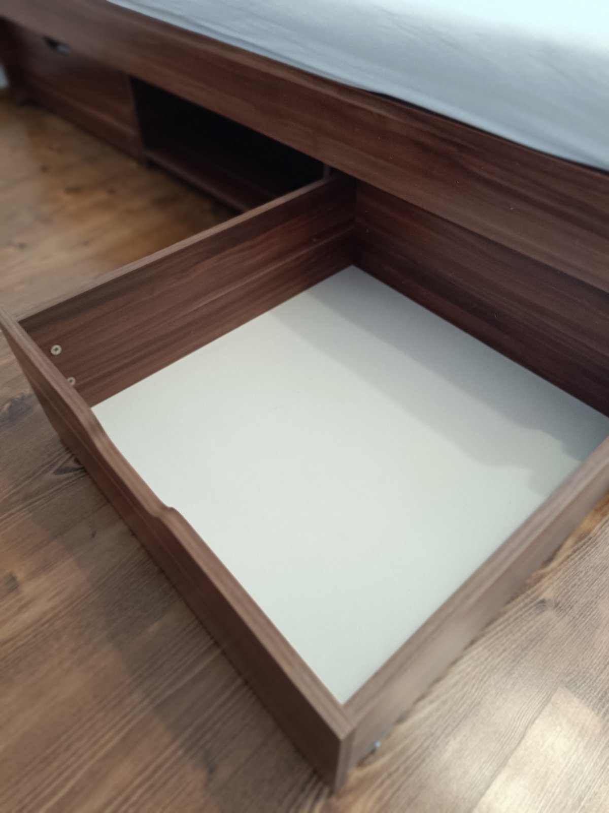 Nová zásuvka pod posteľ, kúpili sme dve v balení, tak jeden máme nazvyš, je to masív smrek, má kolieska. Pod posteľ 2*90 cm úplne v pohode, ešte ostane miesto. My máme v nej lego...