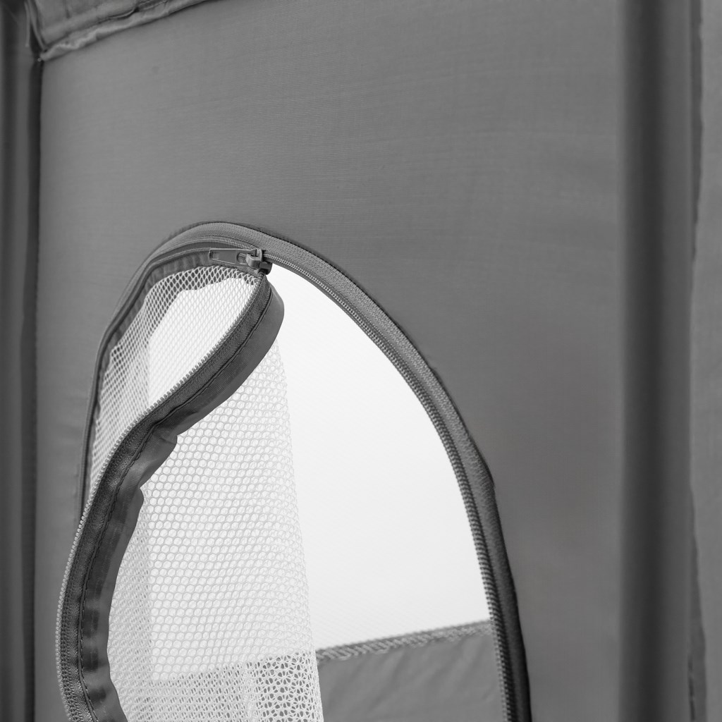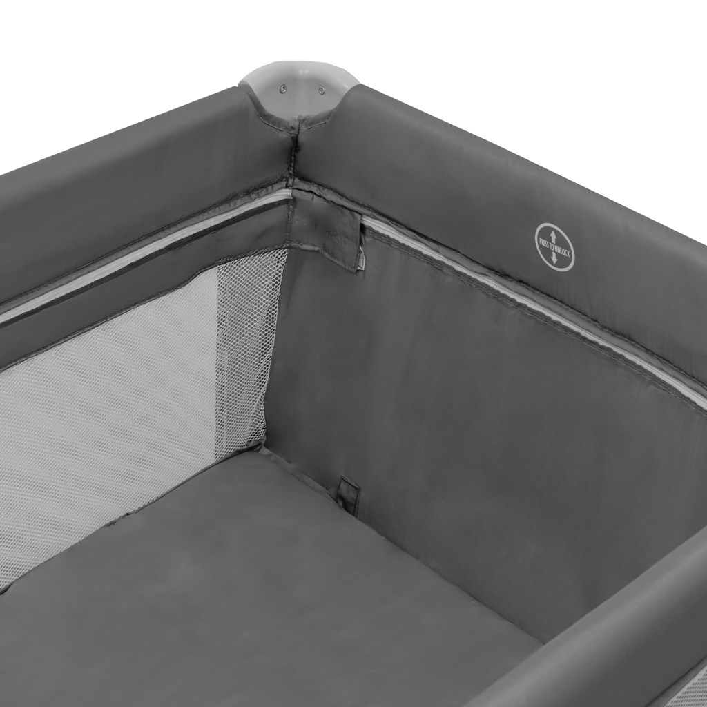 Postieľku možno jednoducho zložiť a vďaka jej ľahkej konštrukcii a integrovaným kolieskam s brzdou ju môžete pohodlne presúvať z miestnosti do miestnosti. Sieťované bočnice zabezpečujú stálu cirkuláciu vzduchu a vizuálny kontakt s dieťaťom. Postieľka sa dá zložiť do kompaktných rozmerov a vložiť do praktickej prenosnej tašky, ktorá je súčasťou balenia.