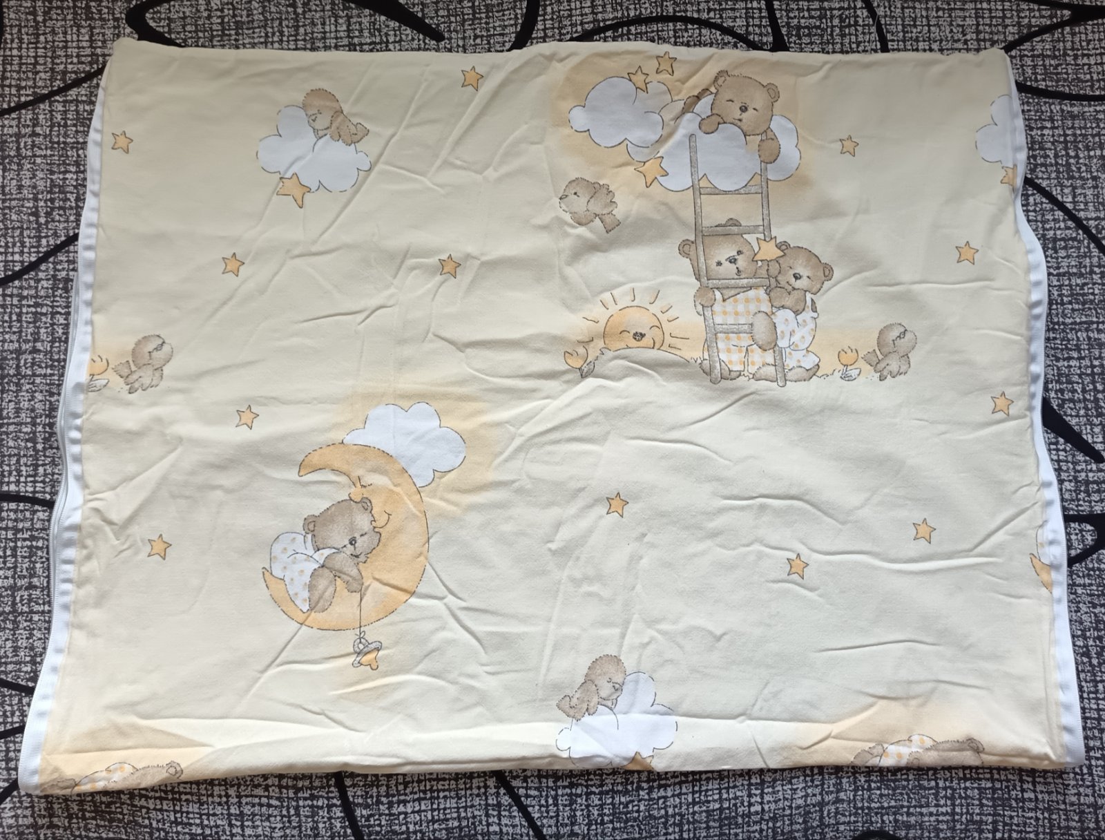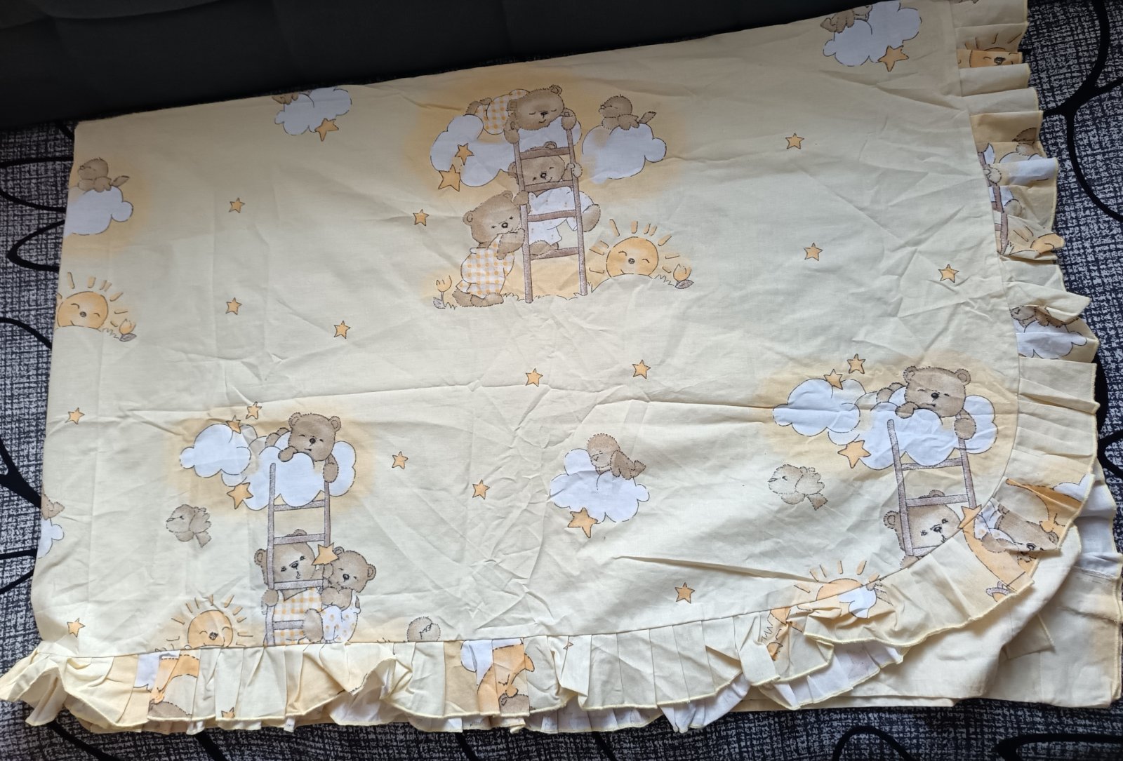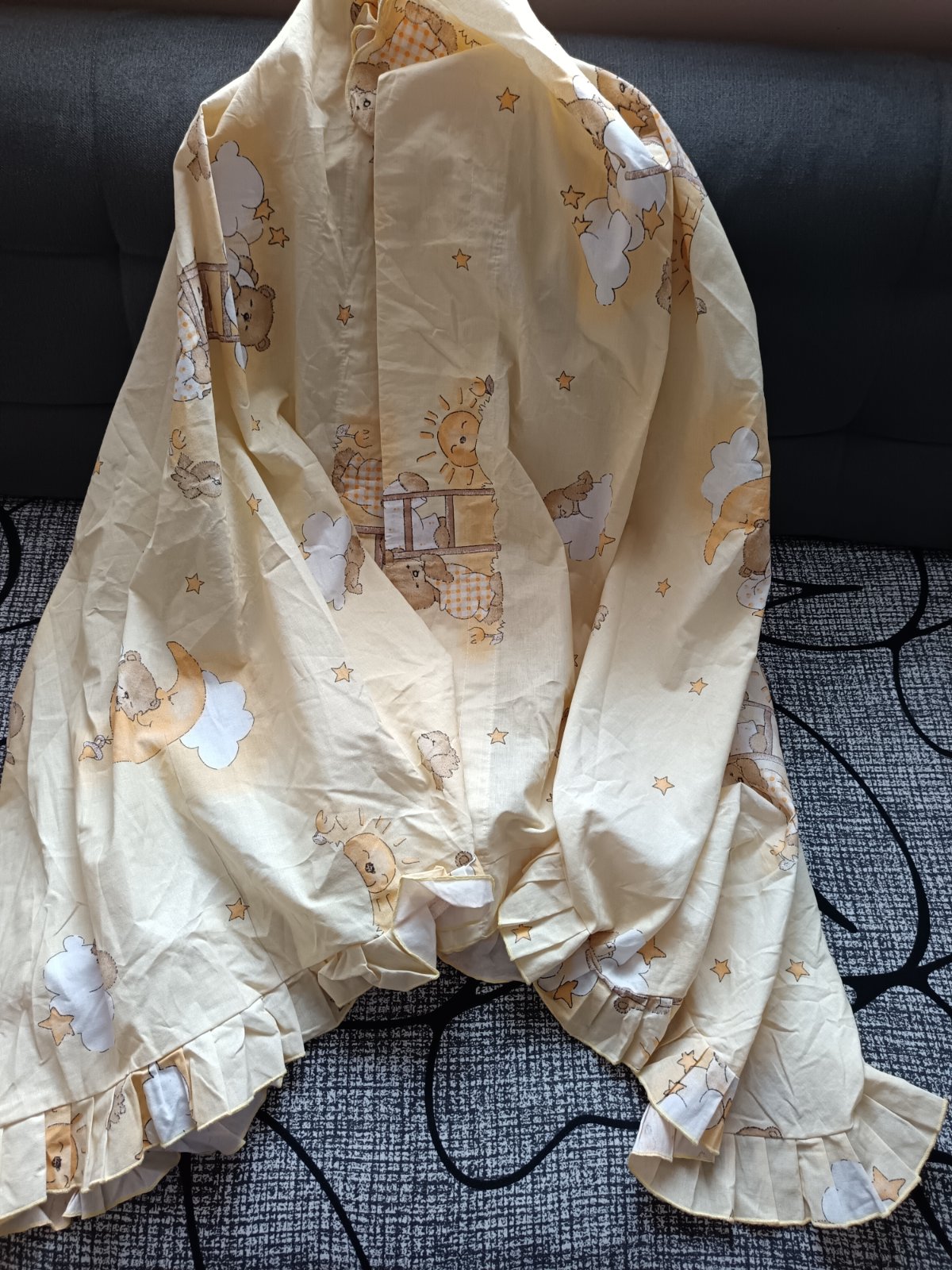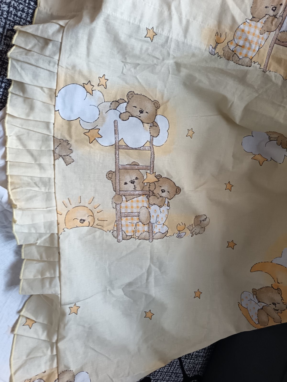Macikový set. Skladá sa z baldachýnu je bez stojanu a chránič postieľky. Prikladám aj návliečku na paplón aj na vankúšik. Veľkosti som nemerala.