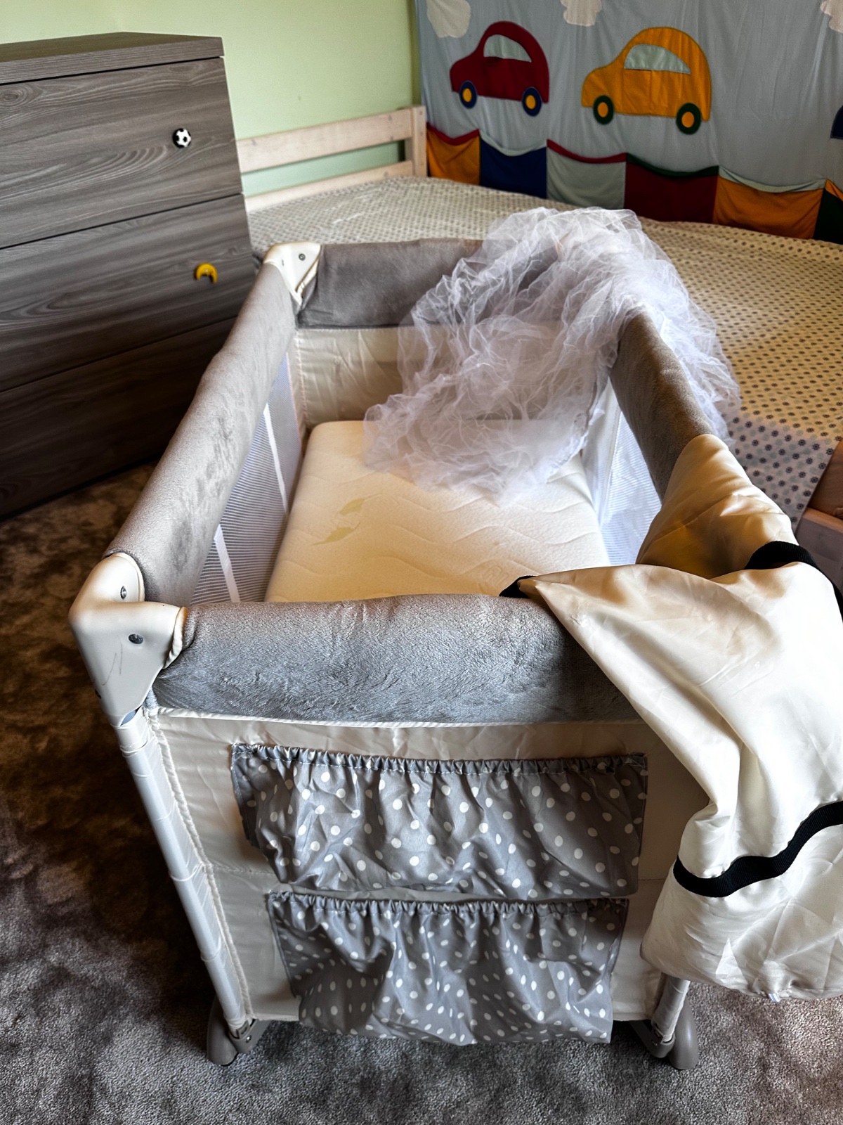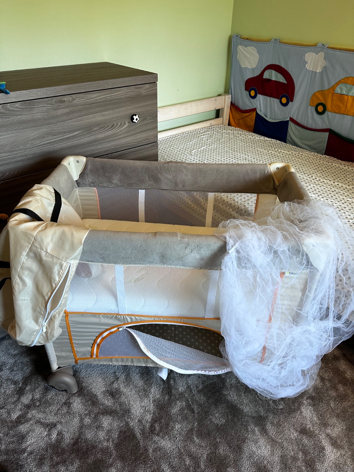 Nádherna a praktická cestovná postieľka. Ja som ju využila v obývačke ako občasné prespanie. Je nepoškodená, vo výbornom stave ako nová. Na konci fotiek je aj popis k tomu. Je nastaviteľná výškovo,...