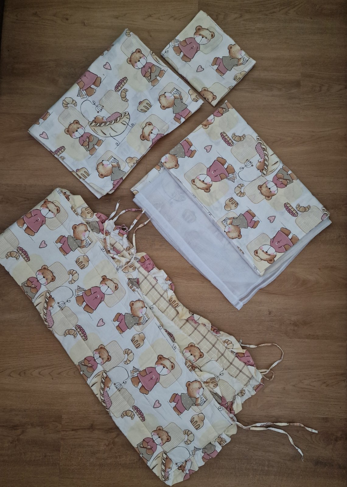Hniezdo do postielky, navlecky na vankusik a paplonik, neboli pouzite ani oprane, pridam k nim este nepremokavu plachtu na madrac.