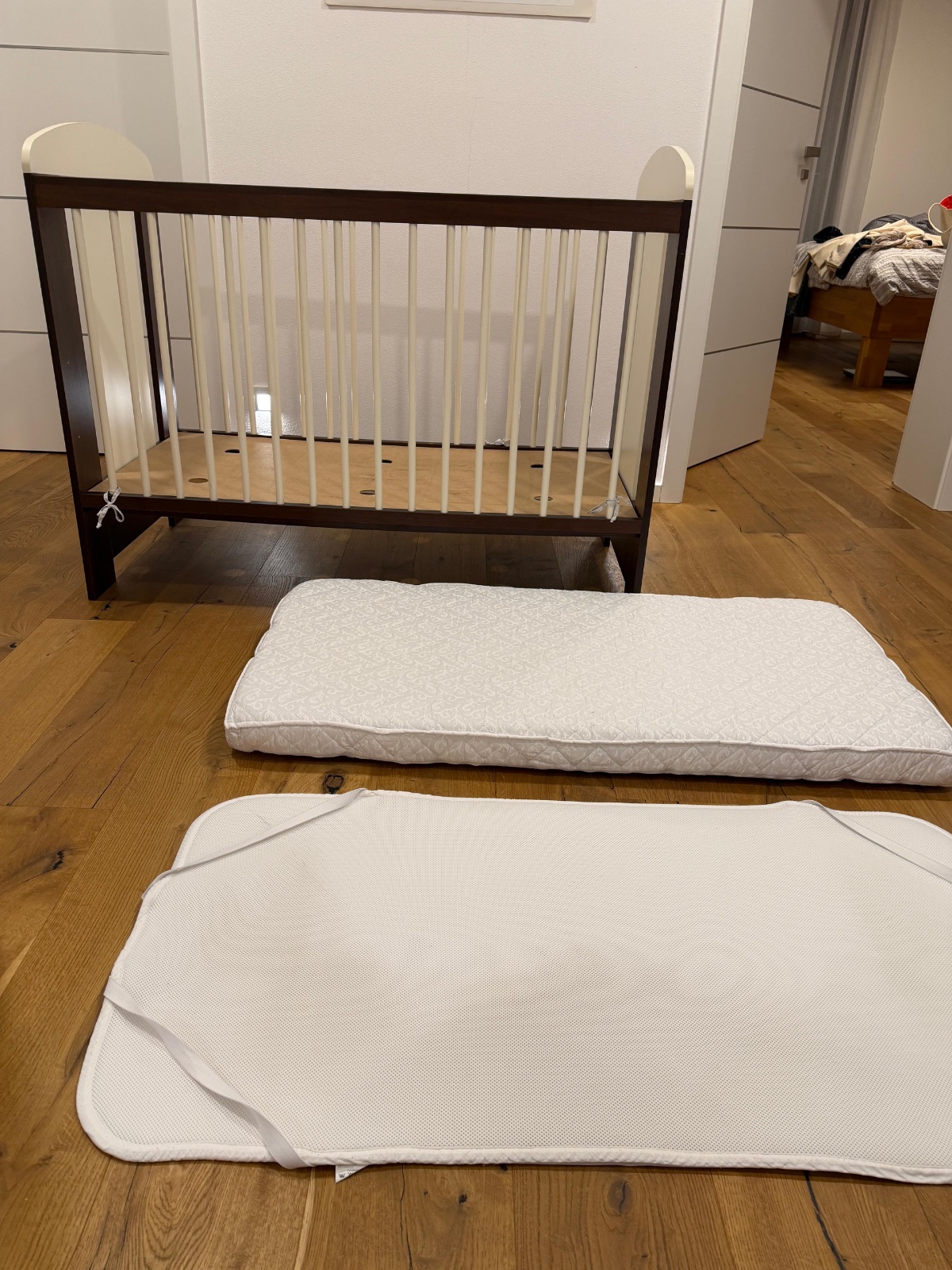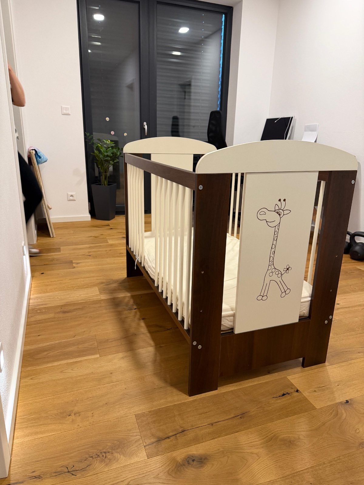 Používana po 2 detoch, ale po nateri bude ako nova Ma nejake nedostatky, trochu pooskierana, ale je to kvalitne drevo, tak staci len pretriet Ma 3 polohy Matrac je kvalitny z pamatovej peny