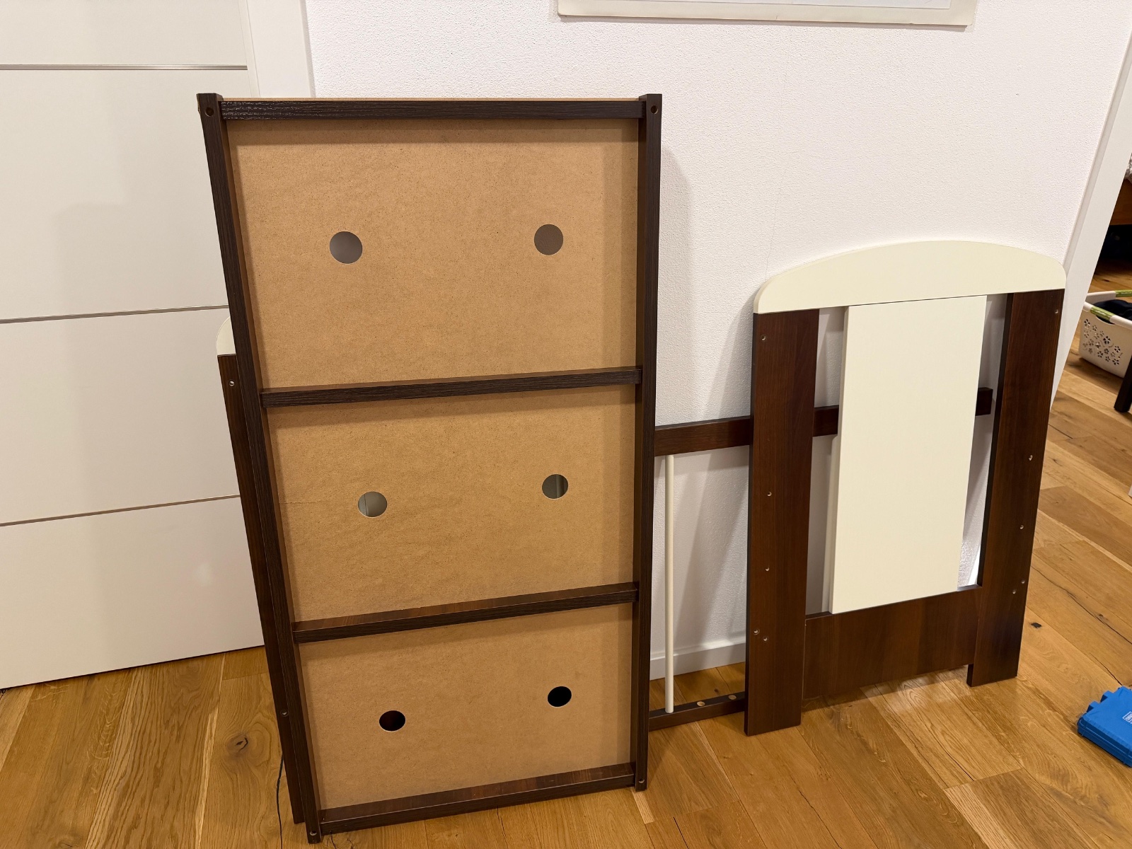Dobrý používaný stav. Bez matraca. Všetky vady nafotené. Tie krémové časti majú zaoblené hrany bez poškodenia. 2 tyčky sa dajú vytiahnuť. 3 úrovne nastavenia. Jediné väčšie poškodenie bolo začínajú...