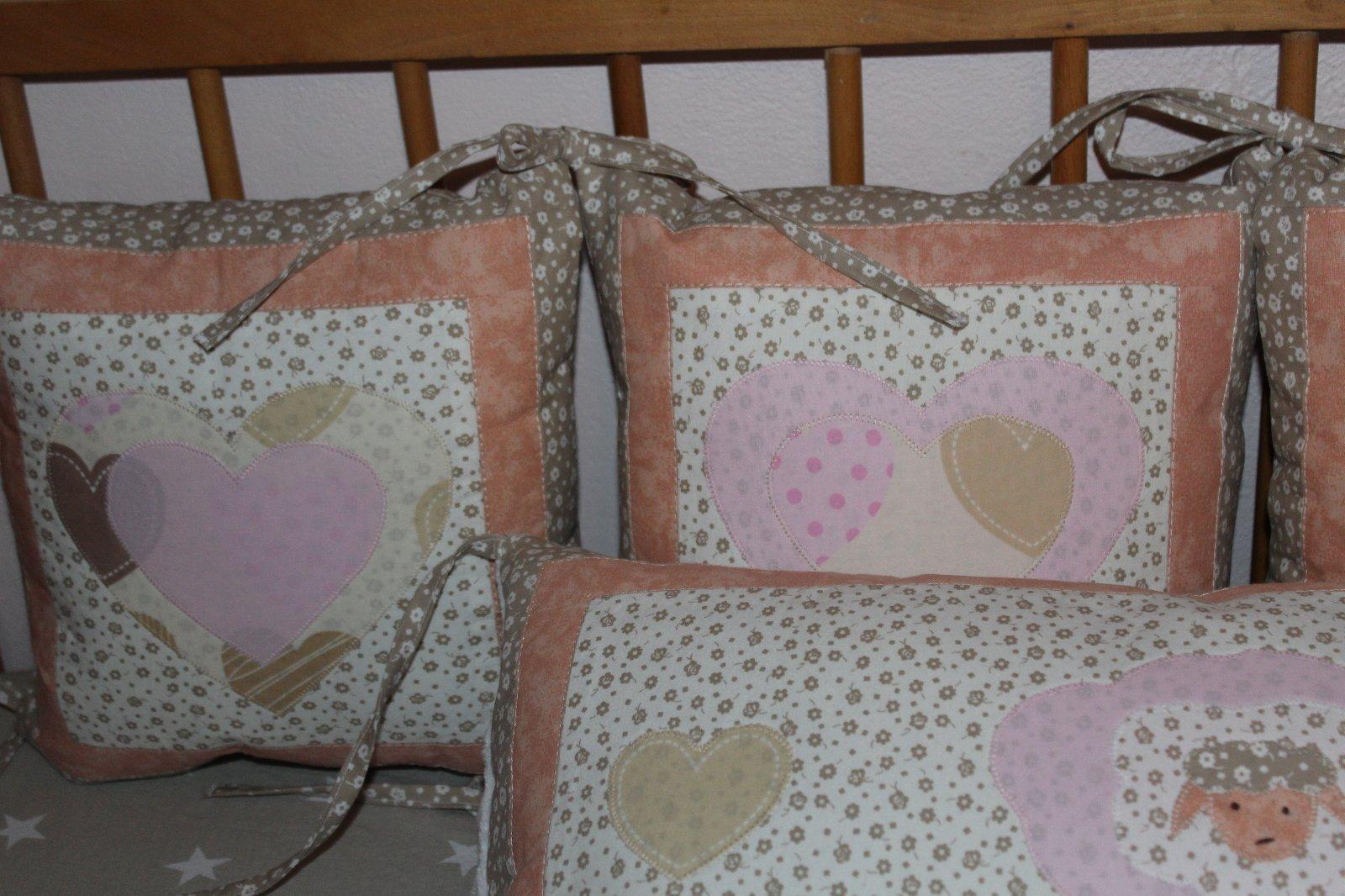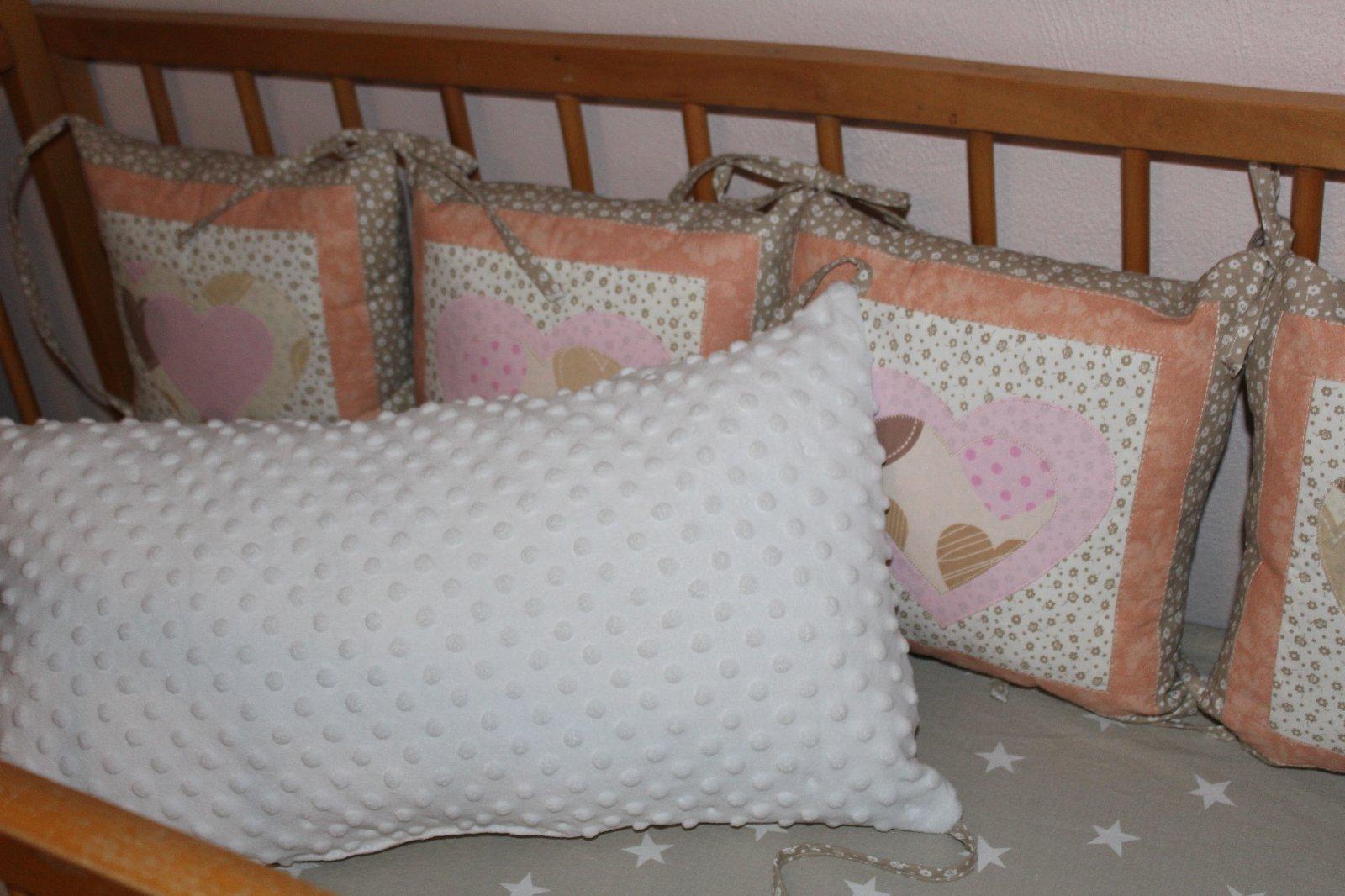 Súprava do detskej postieľky, 12 vankúšikov ako hniezdo, obliečka na vankúšik a perinku, ozdobná mašľa a srdiečka, plachtička, baldachýn na vyžiadanie navyše cena.