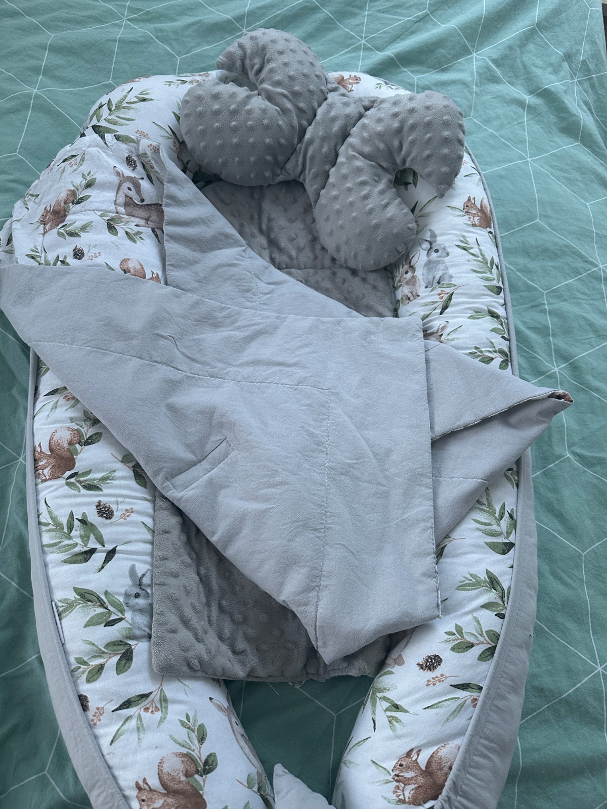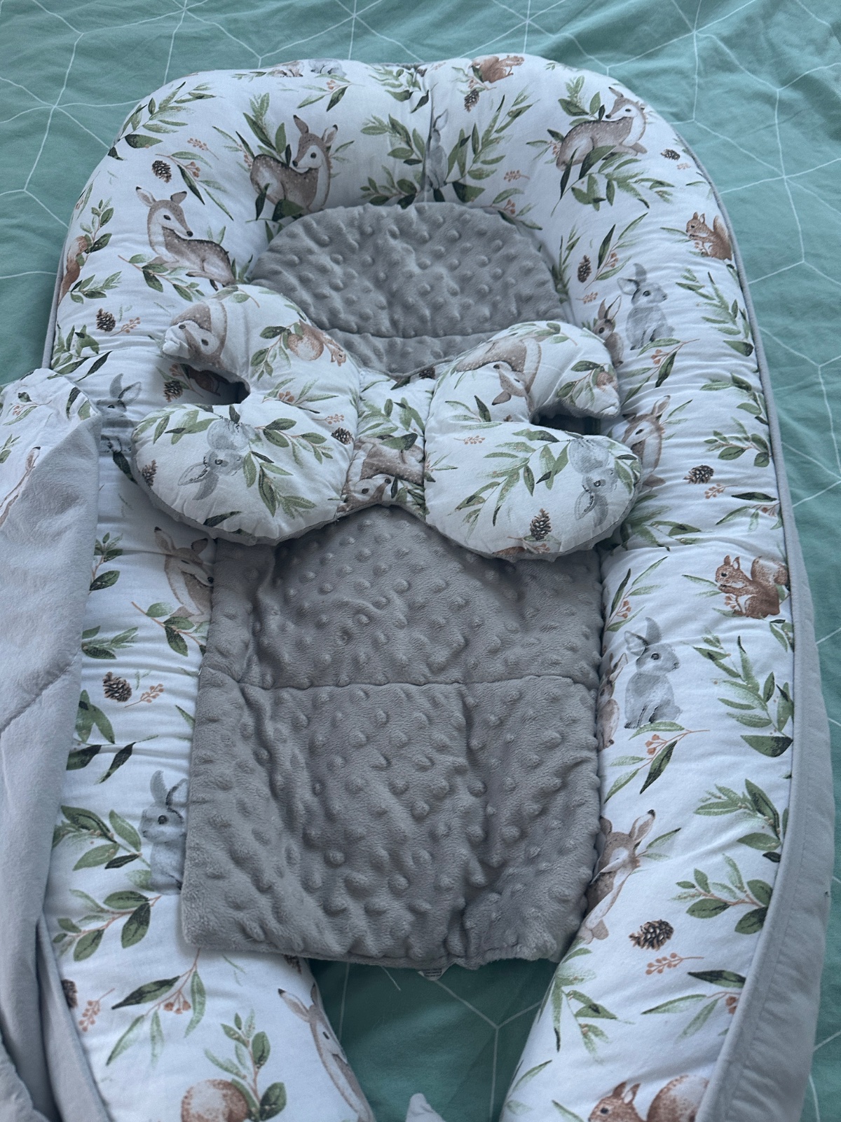 Krasne hniezdo pouzite asi 5x … motiv lesnych zvieratiek.. sucastou je hniezdo, motylikovy vankus.. podlozka.. tenka zavinovacka v danom motive.. ak bude zaujem.. k nakupu darujem uz u nas nevyuzity baldachyn biely so sivymi detailami bez konstrukcie.. bude si ju treba k nemu dokupit