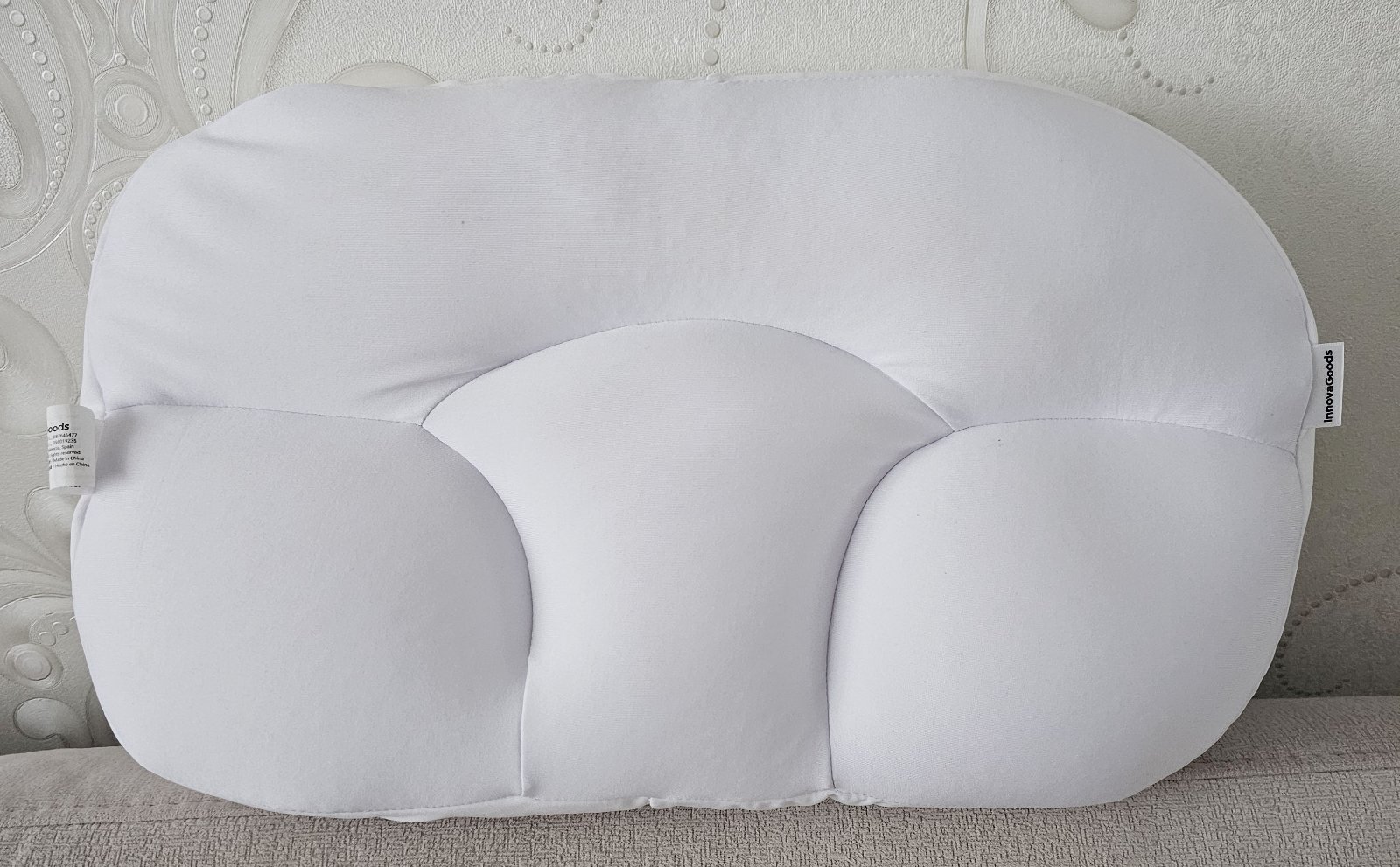 Výborný stav, mám viac modelov a nevyužijem. Príjemný mäkký a prispôsobivý materiál a tvar. Vankúš má tvar obláčika s mikropenovými guličkami. Prispôsobí sa krku aj tvári. Veľkosť cca 30x50 cm.