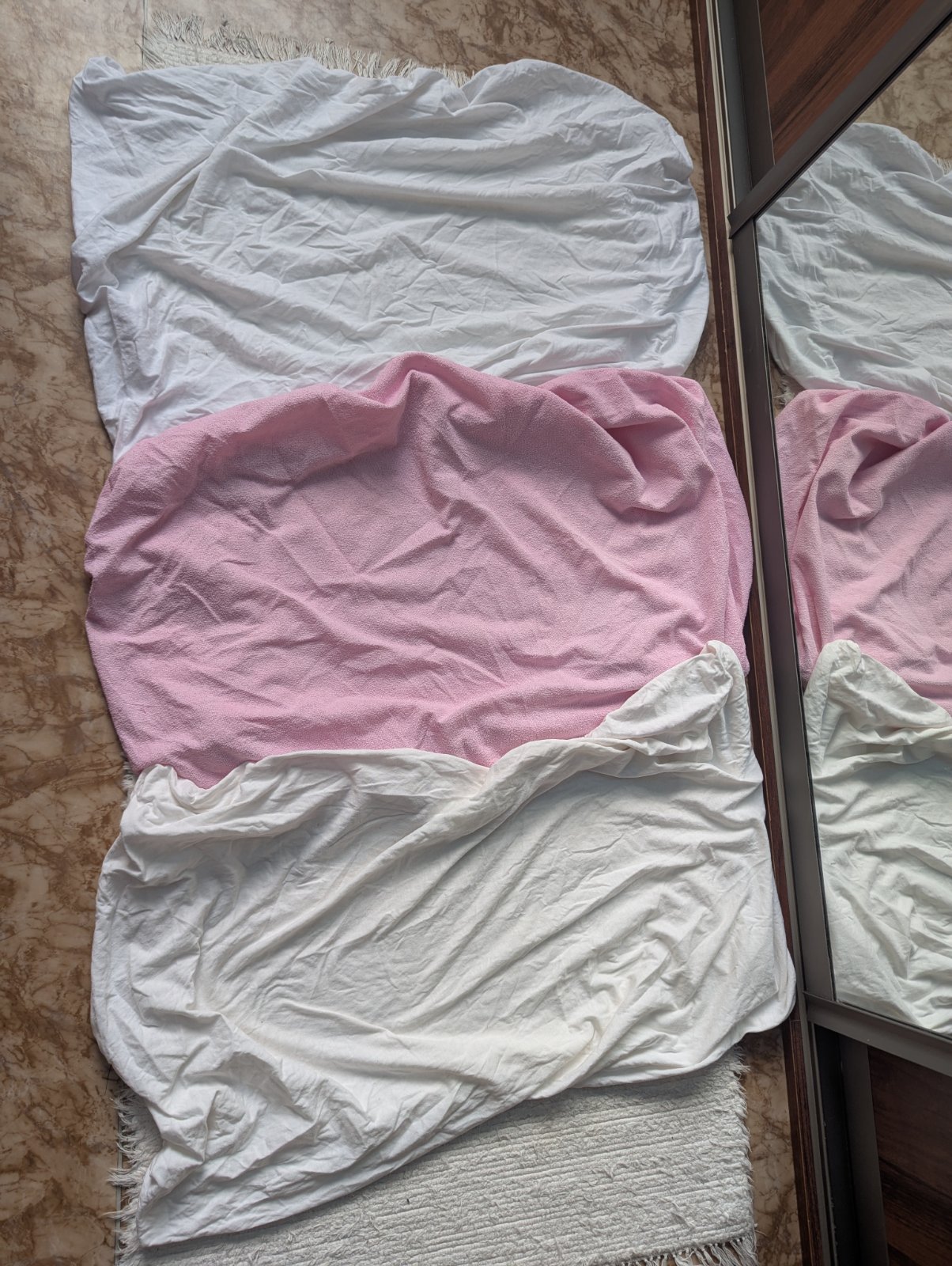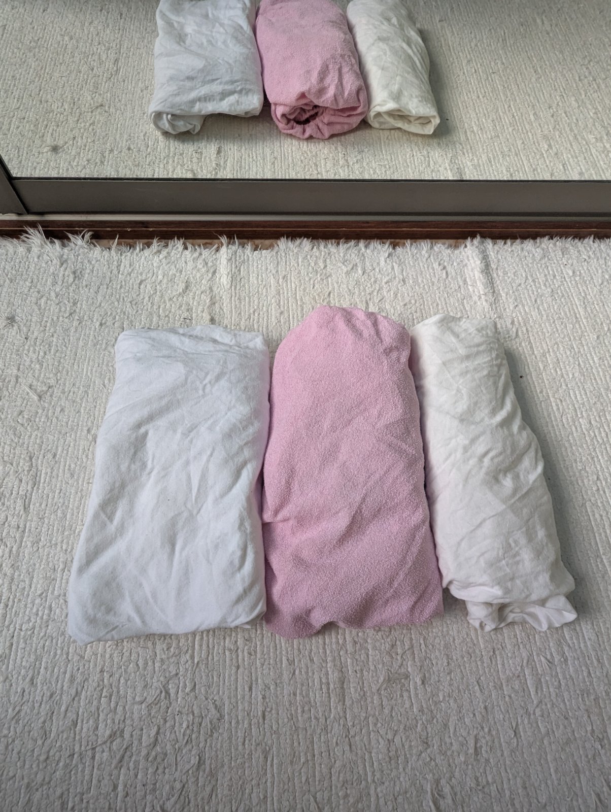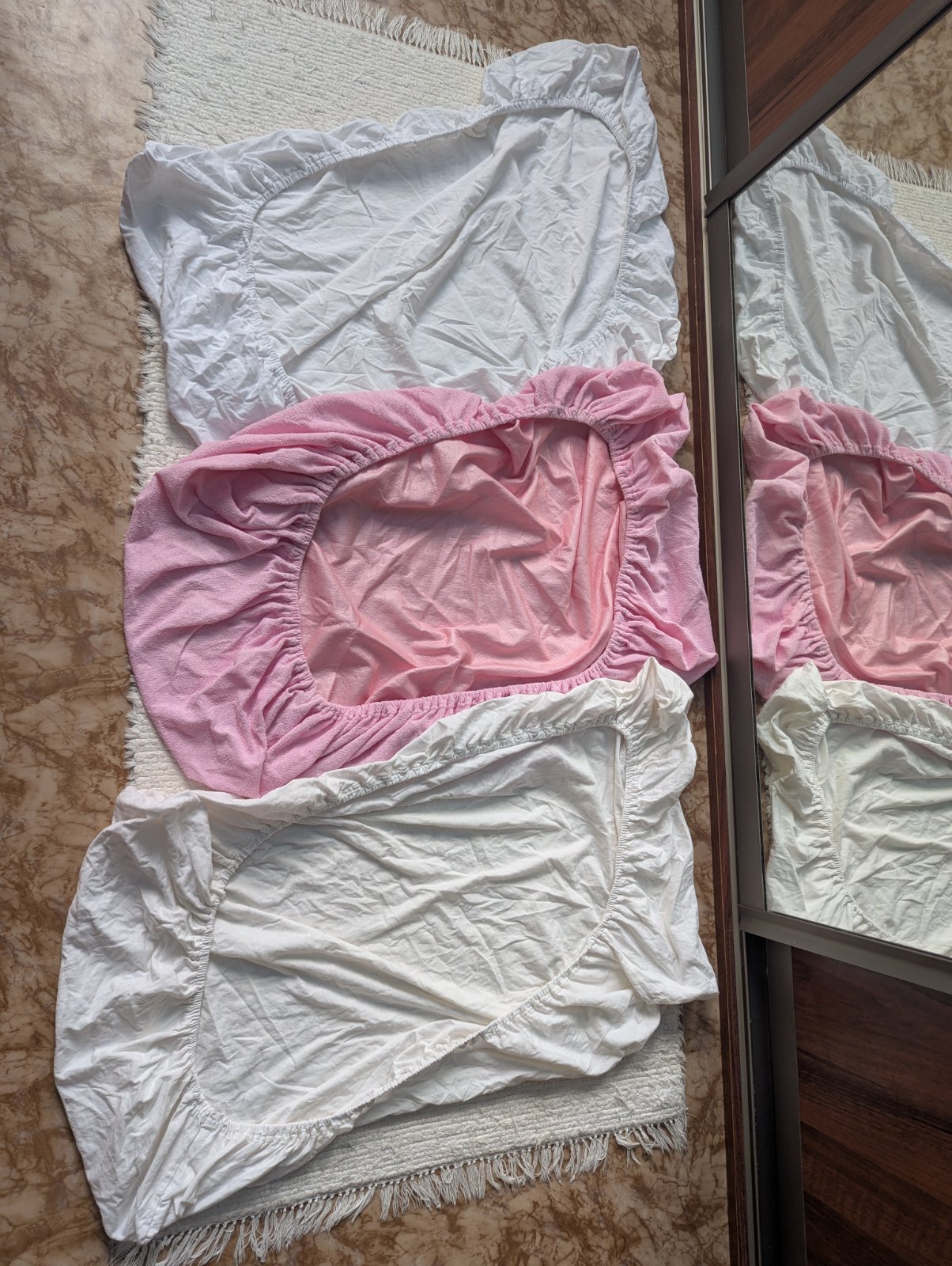 3x detská napínacia plachta do postieľky, farby sú biela, krémová a ružová. Plachty boli použité ale sú v dobrom stave určite poslúžia, ich nedostatky viď na foto.