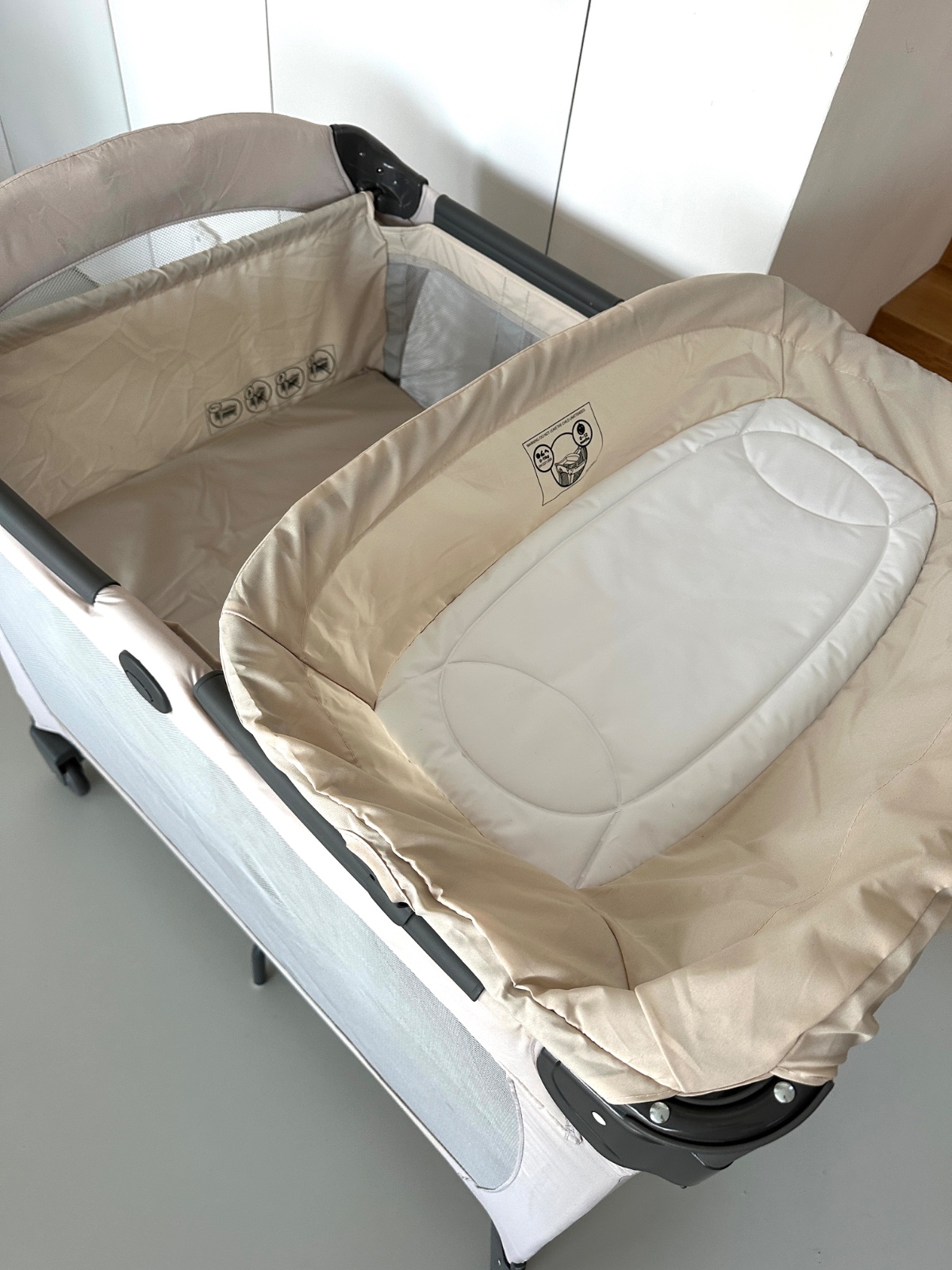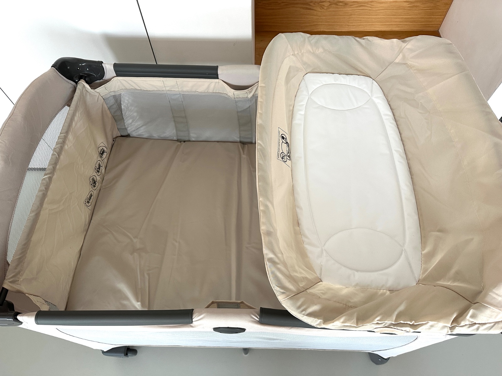 Dá sa používať v 2 polohách - má závesné lôžko a prebaľovací pult.