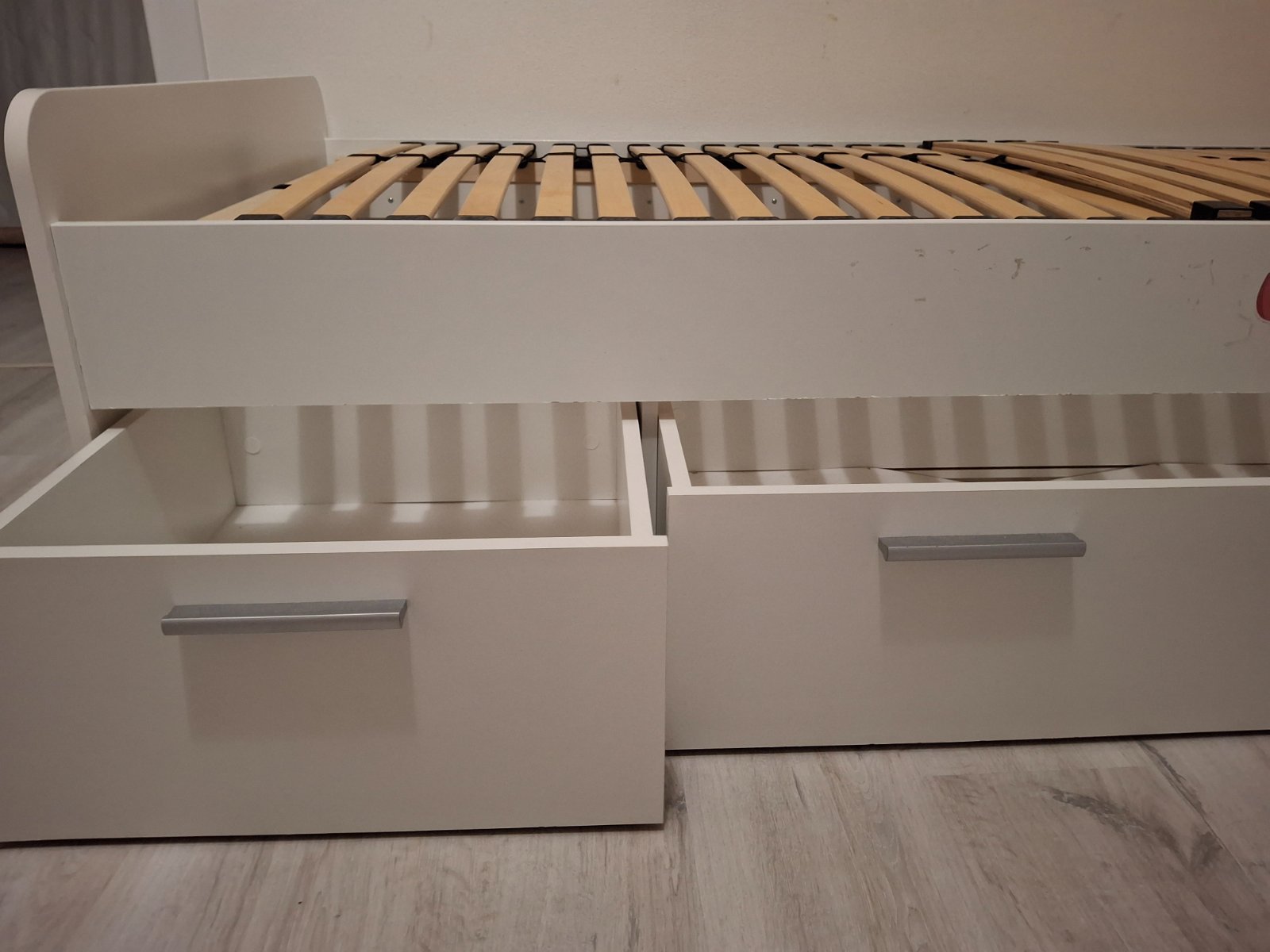 Top stav.Bez poškodení ( máme ju cca 2 roky )...výsuvná posteľ je široká cca80cm dĺžka cca 200.Predaj s madracmi ale bez roštov. (ma štandardnú šírku a dĺžku tak sa dajú dokúpiť nové). Vo vnútri po...