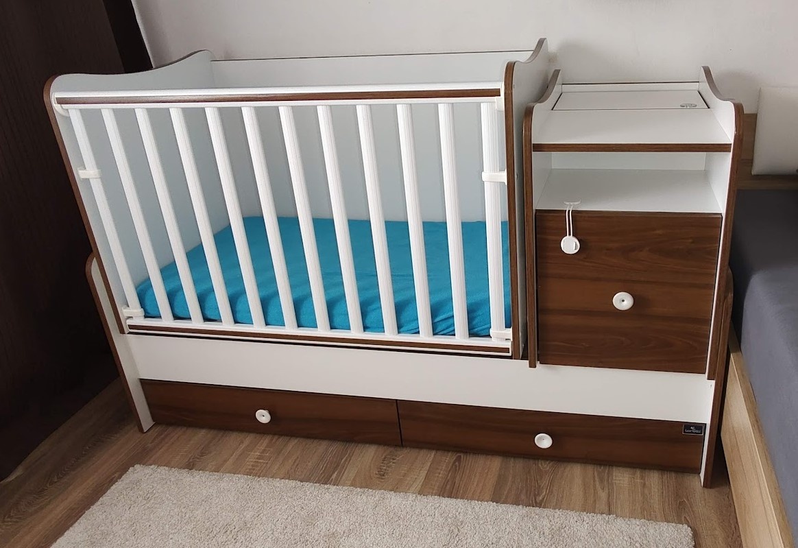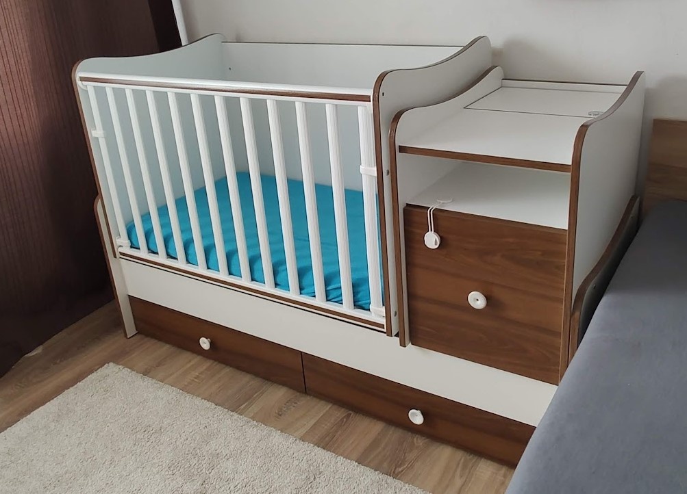 Predám zachovalú detskú kombinovanú postieľku (postieľka+prebalovacia komoda) Lorelli Trend plus, ktorú je možno s rastúcim vekom dieťaťa prispôsobiť a urobiť z nej posteľ pre juniora a písací stolík (viď foto v priloženom linku).