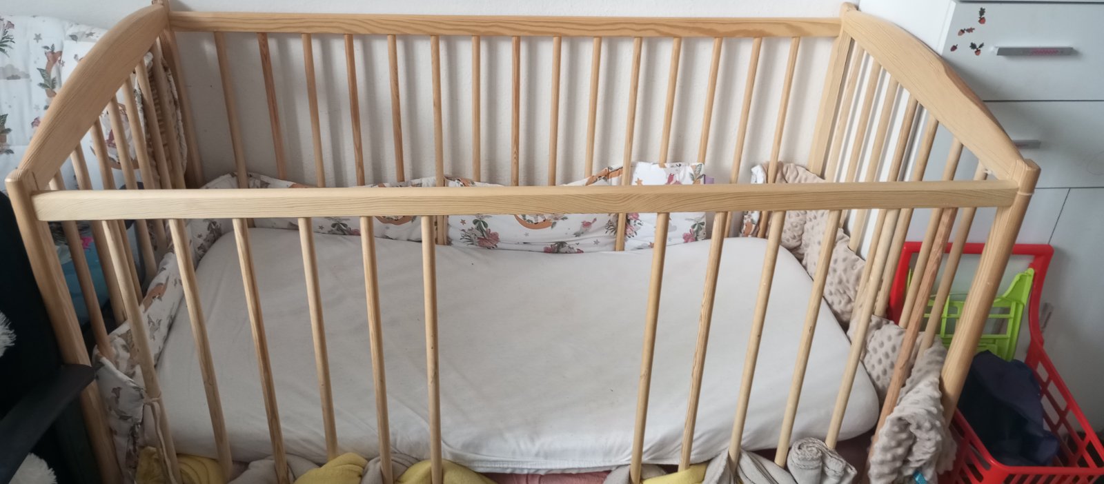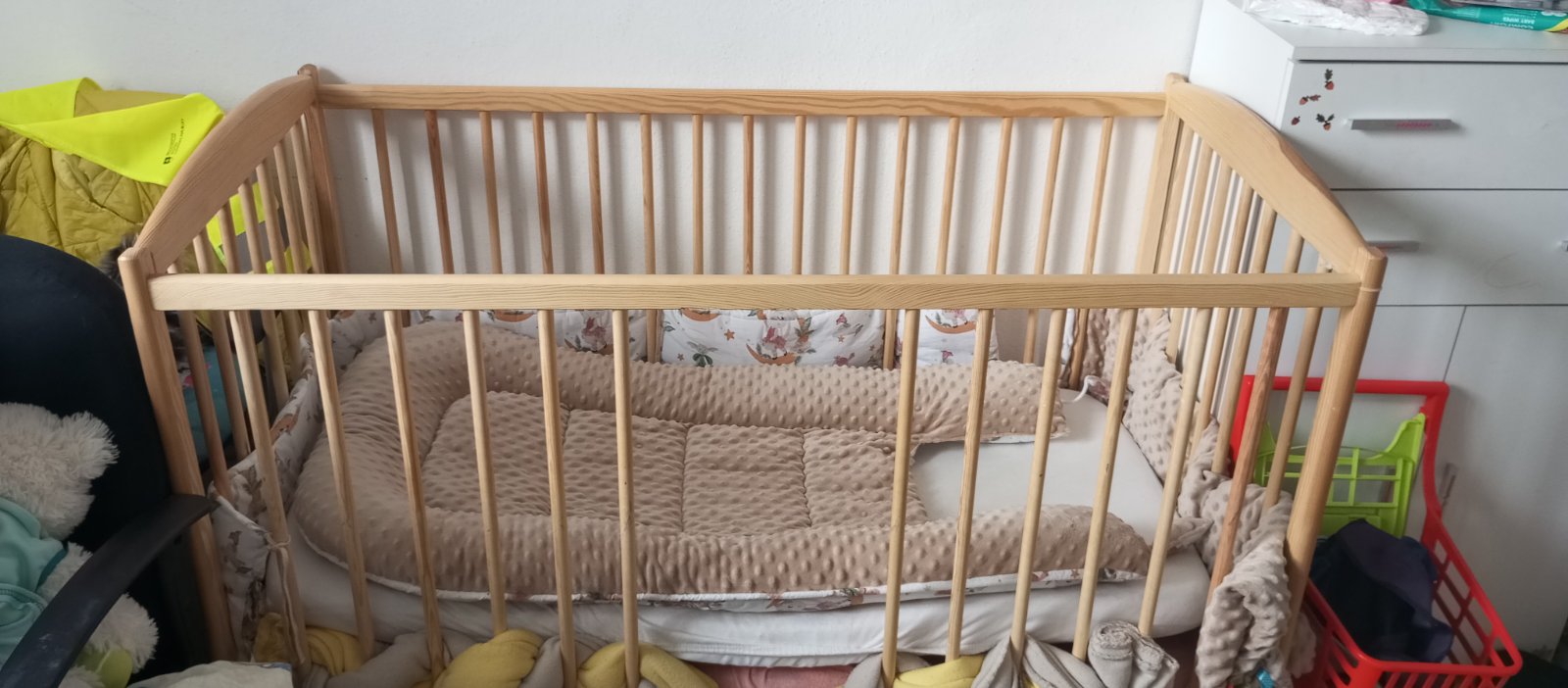 Používaná dva roky. Chyba jedna palička museli sme ju dat preč, dve ktoré sa dajú vybrať mame odložené. Postieľka sa dava iba s jedným matracom(sú dva pre vyšší efekt) na matraci je ochranna plachta, všetko sa dá prať. Plus môžete si ju zobrať aj s výbavou (alebo nemusíte, vyjde menej cena, bez výbavy). Len osobný odber. Cena 35€