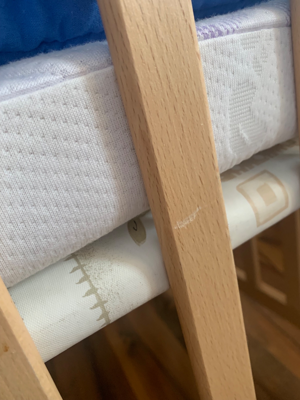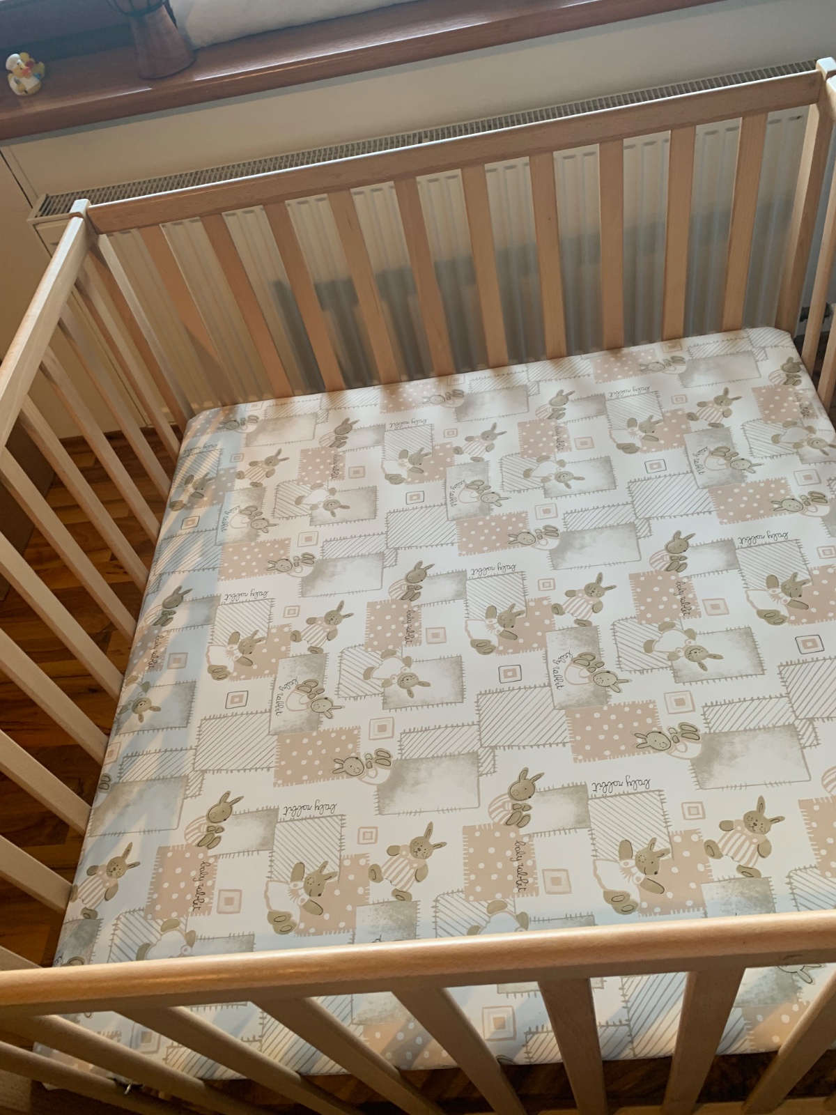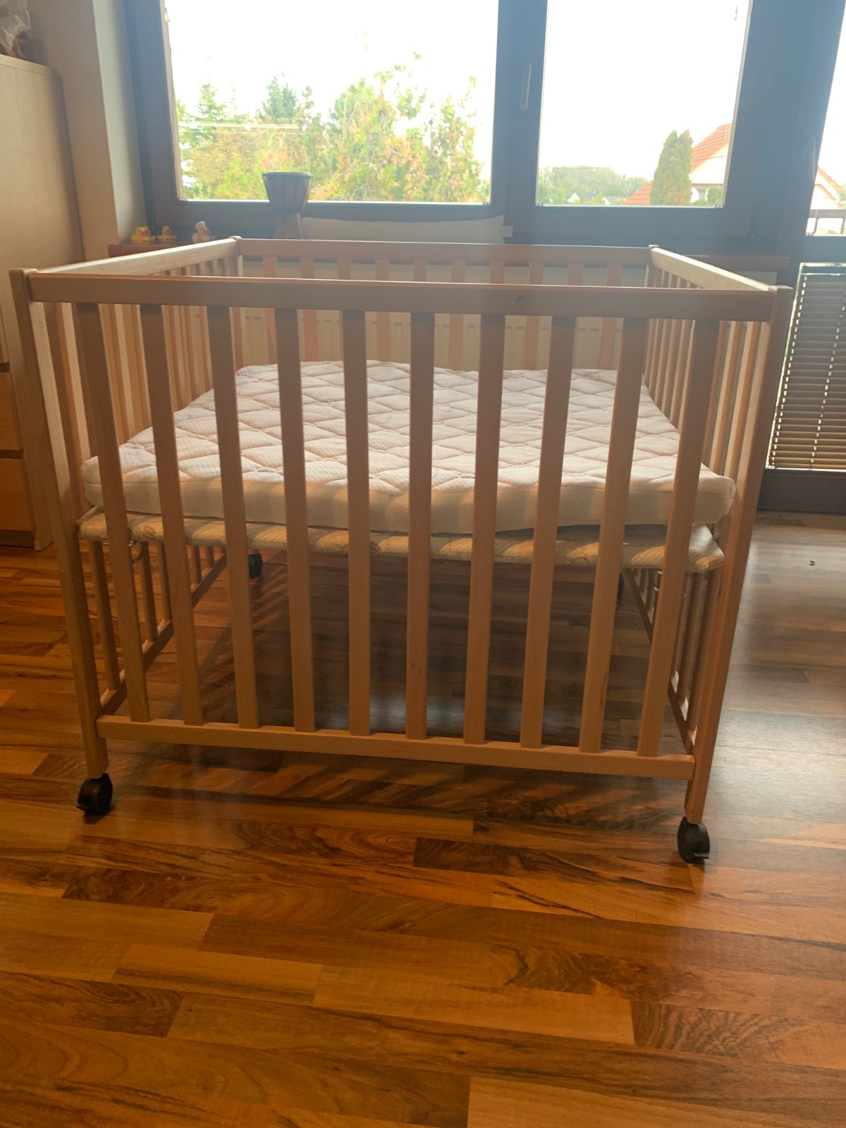 Top stav, ako nová, rozmery 97x98cm, výška od zeme (vrátane koliesok) je 84cm. Je k nej pasujúci, kvalitný matrac, zn. Träumeland s prateľným požahom. K postieľke pribalím aj pasujúci mantinel (vložku) a dve pasujúce biele plachty. Postieľka má 2 “škrabance”, sú na fotkách, inak je ako nová. Lôžko sa sá vyvýšiť a to buď 20, 33 alebo 46cm od zeme. Postieľka má kolieska, ktoré sa dajú zabrzdiť, prípadne aj celkom odstrániť. Preferujem osobný odber v Bratislave, prípadne po dohode v Kráľovej pri Senci.