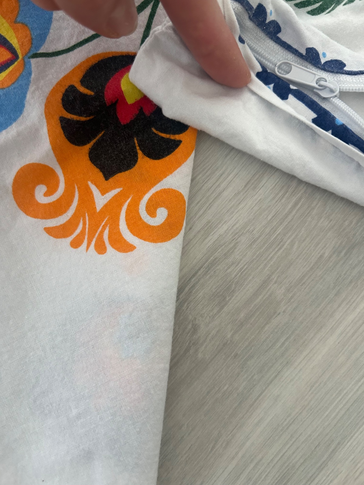 Jarné krásne farebné posteľné prádlo - 100% bavlna a zips👌- návliečky na vankúš a perinu - folklór ľudový motív. Do detskej postieľky - paplon má cca 120cm x 80 cm a vankúš má cca 40cm x 60cm. Rozmery na fotke. Paplón je raz opraný a založený v skrini a vankúš je 2x opraný.