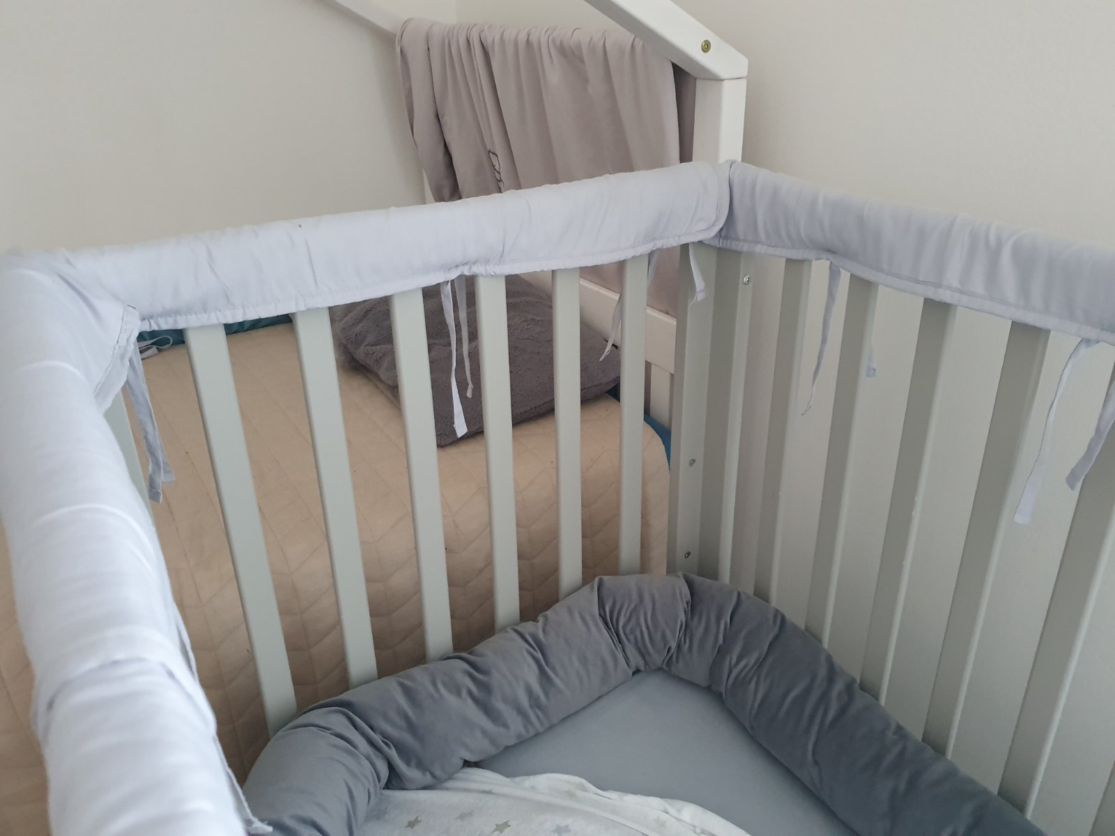 Postielku ponukam s matracom, dvoma antirefluxnymi vankusmi (velky,maly) s oblieckami na ne, s jednou plienkou slintackou, obalmi na bocnice postielky ktore maju chranit od kusancov ( tie som kupila az potom co sa teda dieta pustilo do bobrovania 🦫 mantinelovym valcom, dvoma slonmi, velky slon-moznost vyuzitia ako dojcensky vankus a 4ma plachtami z toho 1ks nepremokava