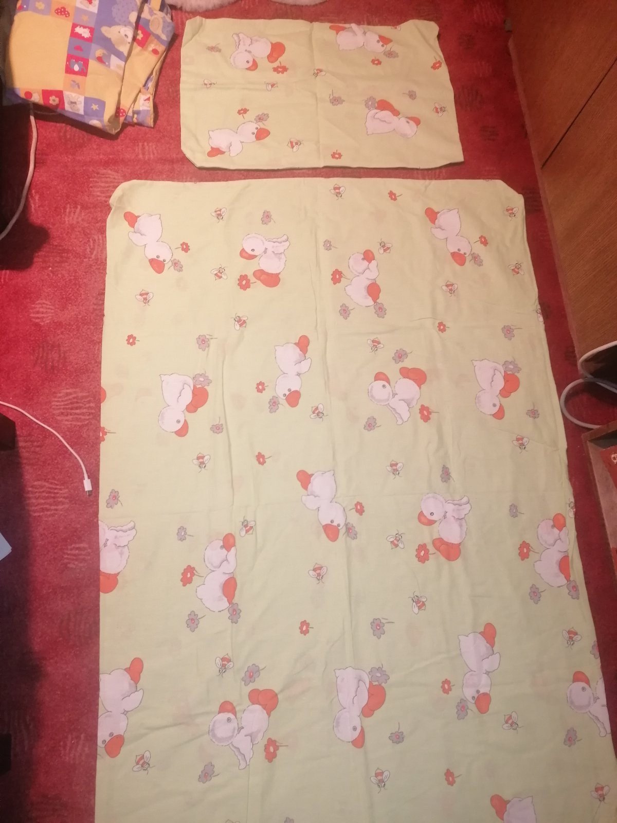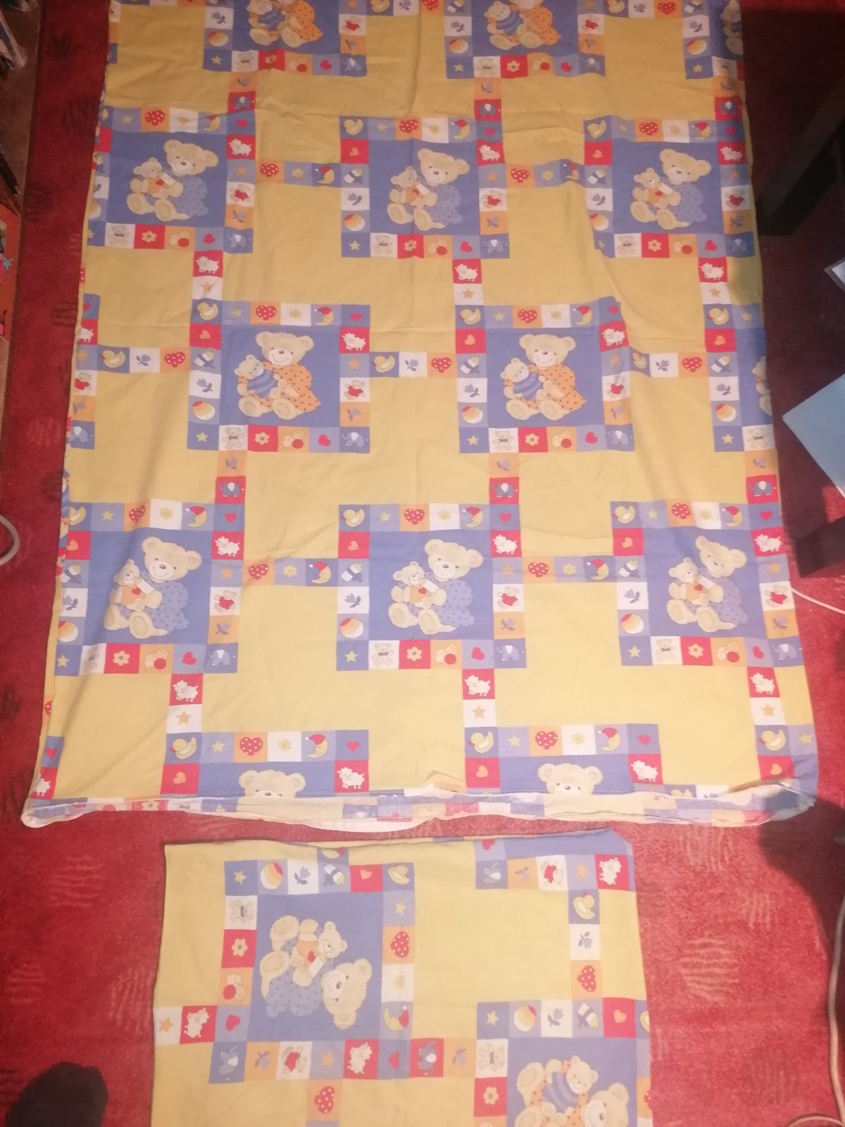 Pekný stav, bez poškodení, na obliečke na vankúš fľaky z fixky (foto). Paplón 130x85, vankúš 40x60