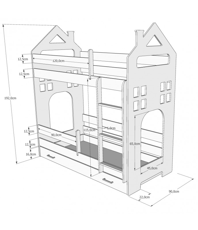 Rebrík a rošty sú z borovicového dreva. Výrobca garantuje, že rodič si môže s dieťaťom pokojne ľahnúť (nosnosť: Do 70 kg | Do 100 kg).