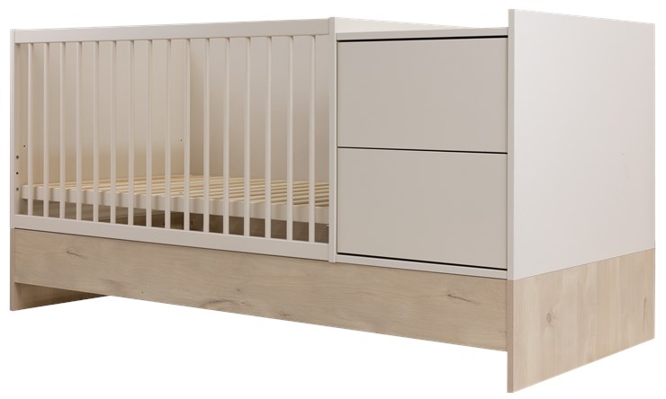 Dá sa prerobiť na nočný stolík alebo úložnú skrinku a posteľ s úložným priestorom, takže sa dá používať od narodenia až po dospievane.