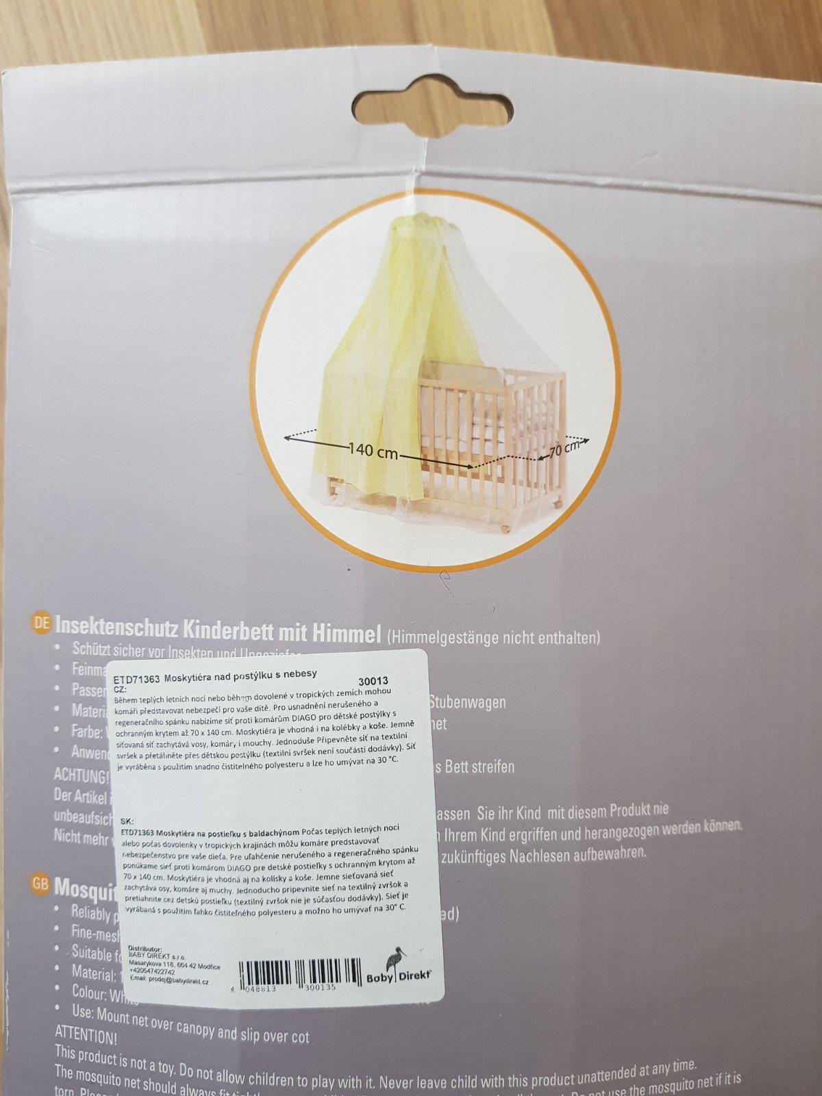 Nová nepoužitá, okolo postieľky 120 x 60, má ešte dosť rezervu, takže vhodná aj na rozmer 135 x 70 cm. Konce sa aj s rezervou stretnú....