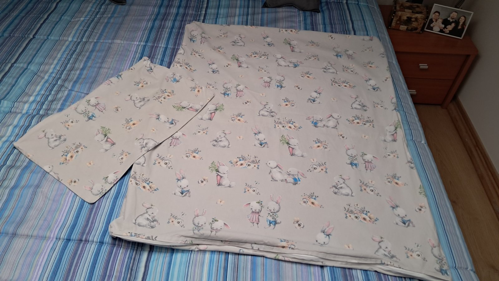 Predám detskú obliečku rozmery sú 105×84 cm. Sú na nej zajačiky. Predám ju za 5 eur, lebo je vo veľmi dobrom používanom stave.