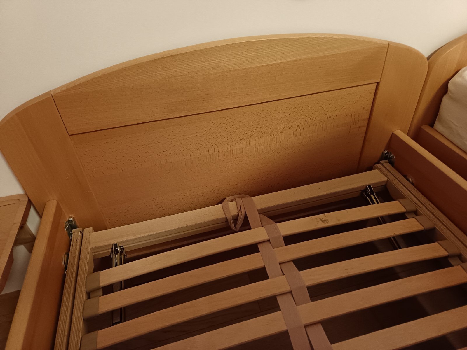 Málo používané 2 ks absolútne bezchybných veľmi kvalitných rámov postelí z bukového masívu na matrace 90x200, ktoré vydrzia generácie.. pevnosť a stabilita je zaistená excentrickým kovaním (rozloženie a zloženie 4 dielov extrémne jednoduché), možnosť nastaviť výšku matraca, hrúbka dosiek 25 mm, všetky hrany a rohy sú zaoblené. Ako bonus k rámom + lamelové rošty polohovateľné. Pôvodná cena 1 rámu postele bez roštu 515 €, teraz 250 € aj s roštom.