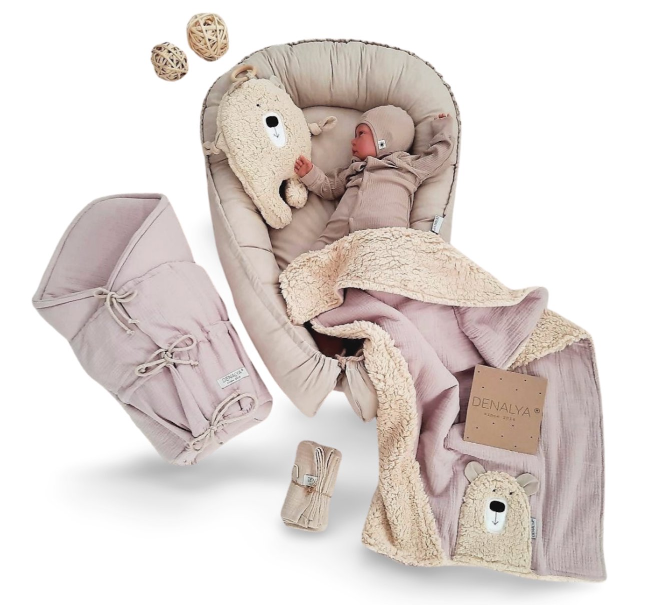 1. Hniezdo pre bábätko 100% bavlna latte (béžová) , výplň antialergické rúno - obojstranne použiteľné, otočíte si na stranu, ktorá Vám vyhovuje.