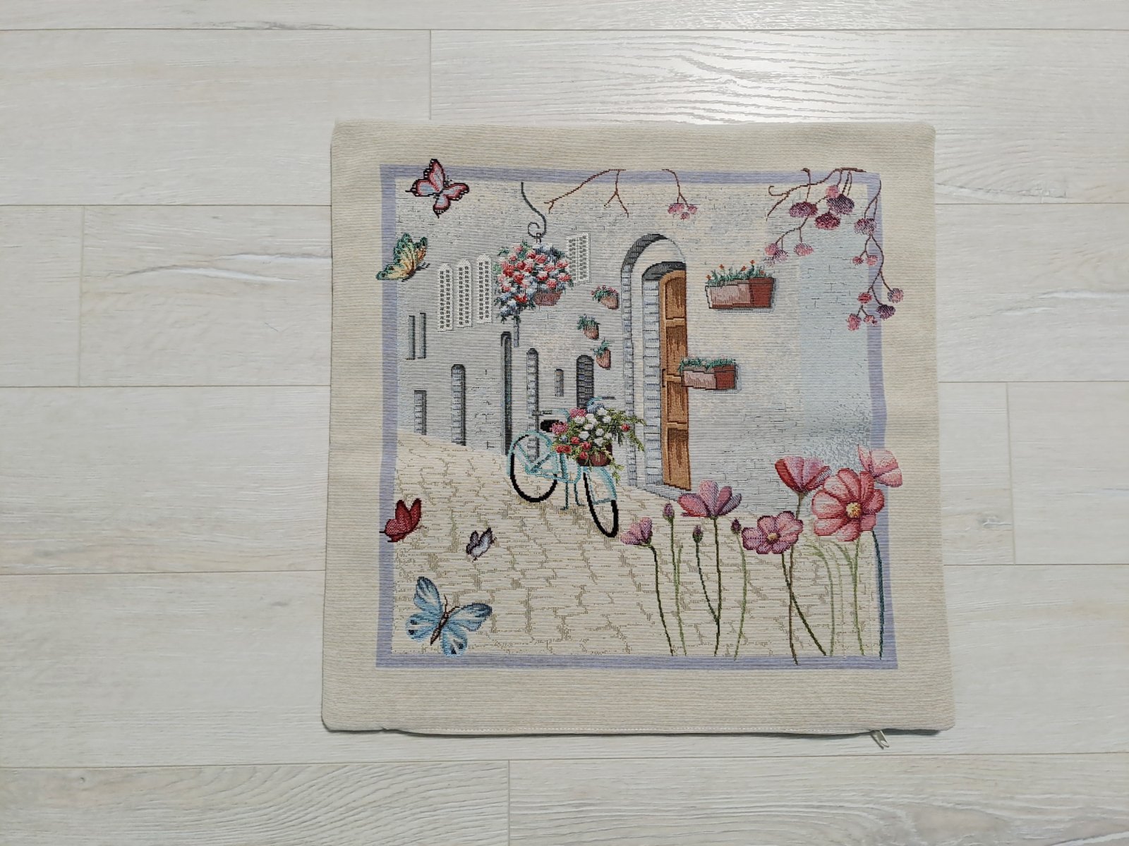 Luxusná gobelínová obliečka na vankúš z pevného, strojovo tkaného materiálu. Zapínanie na zips. Rozmery: cca 45 x 45 cm.