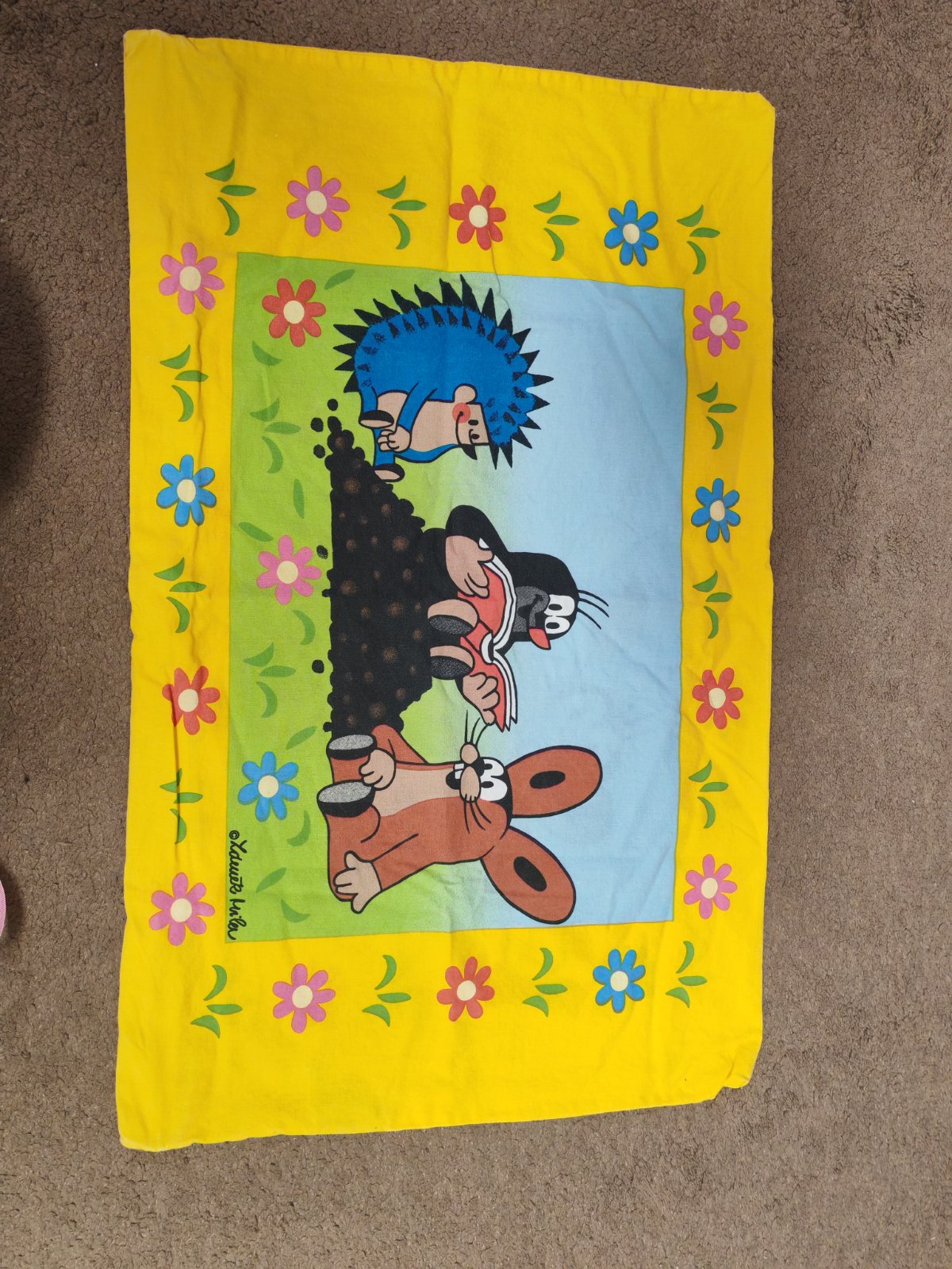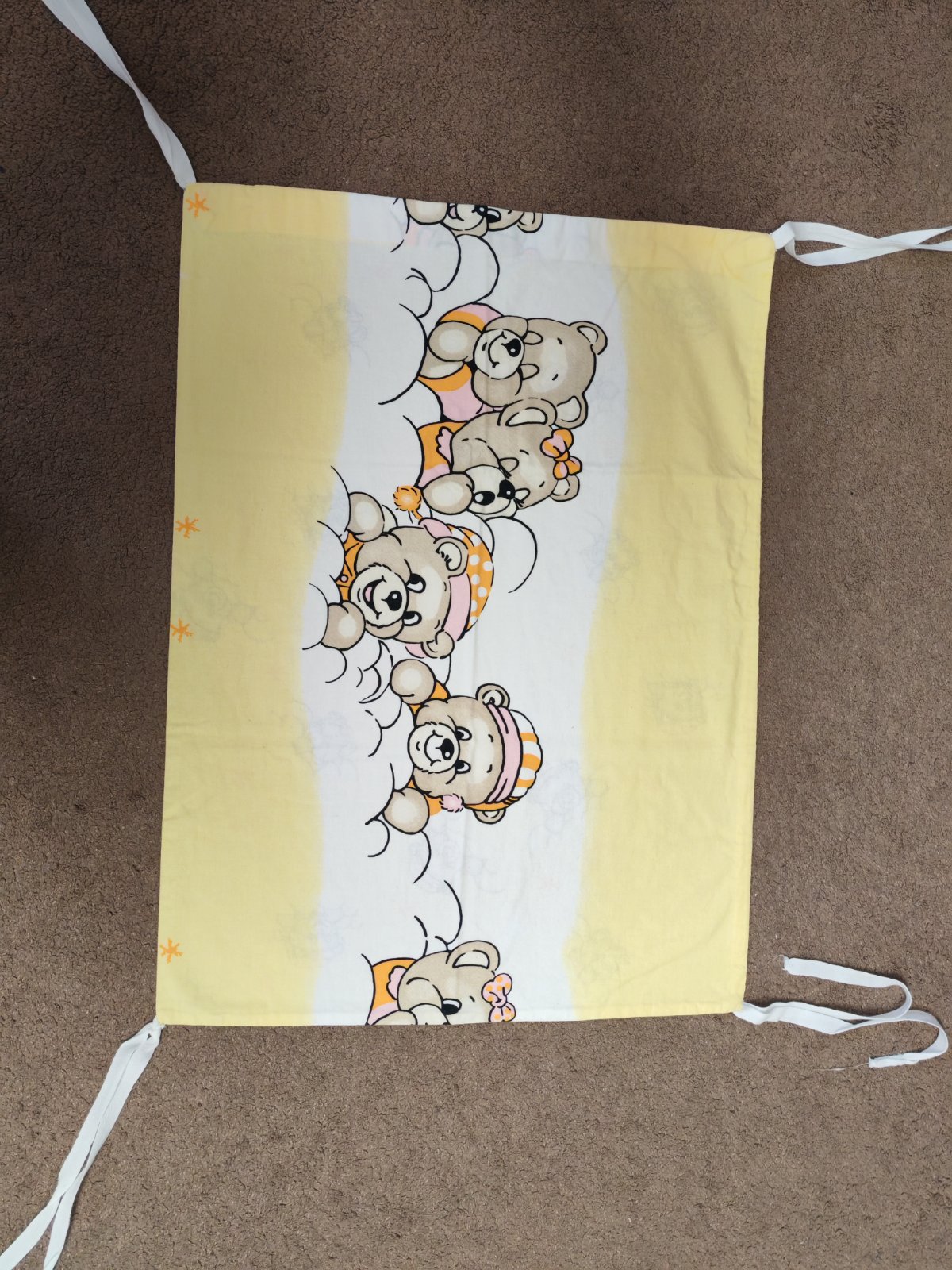 Vankúš má z každej strany iný obrázok a má aj šnúrky na priviazanie k postieľke. Samozrejme sa dajú odstrihnúť, ak ich tam nechcete.