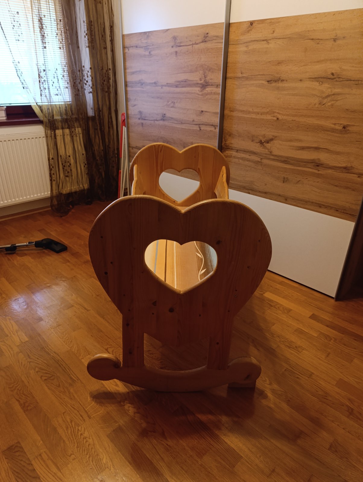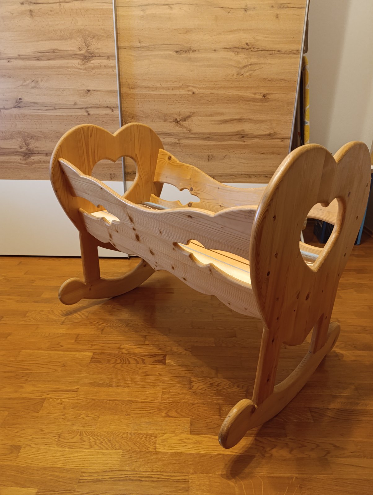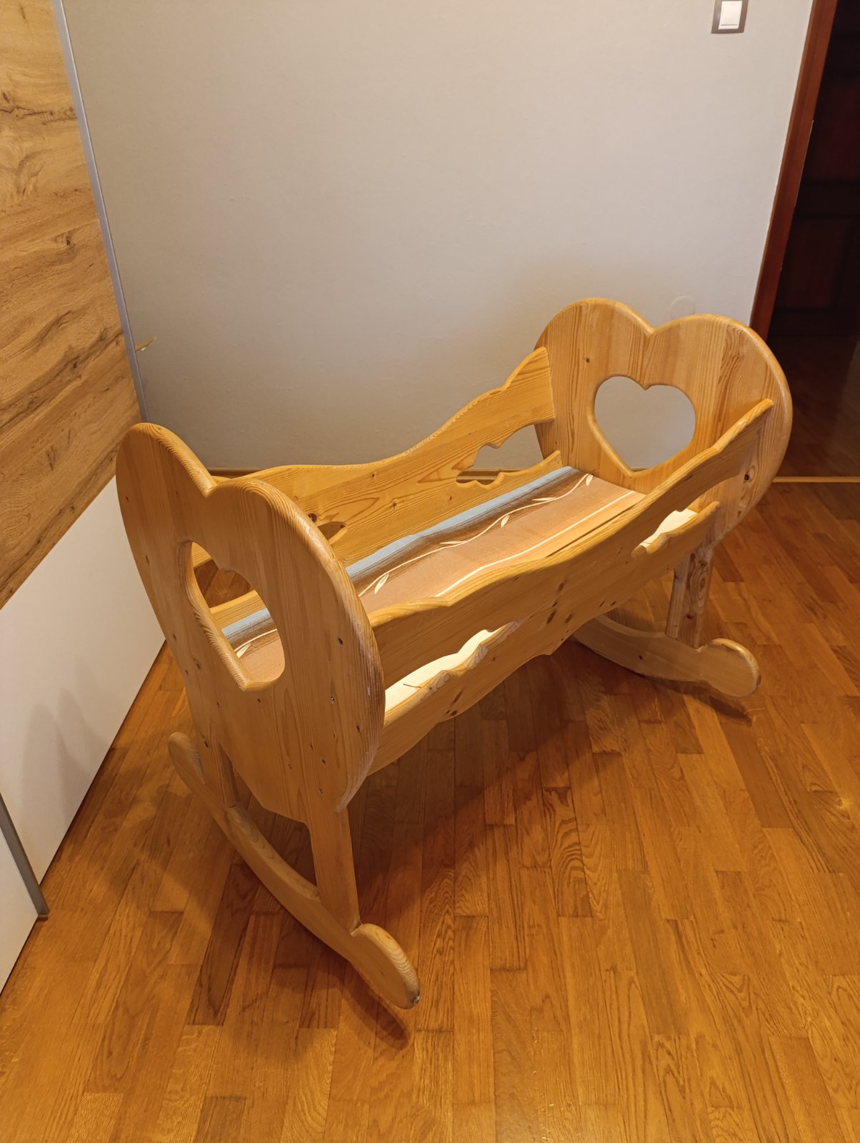 Predám novú pár krát použitu detskú kolísku s poistkou proti kolísaniu. Ručná práca. Žiadna továrenská výroba, je v nej energia oravského rezbára :) Vhodné aj ako nábytkový doplnok na chatu / chalupu. Matrac na mieru v cene. Šírka 50cm, dĺžka 100cm. Cena 40€