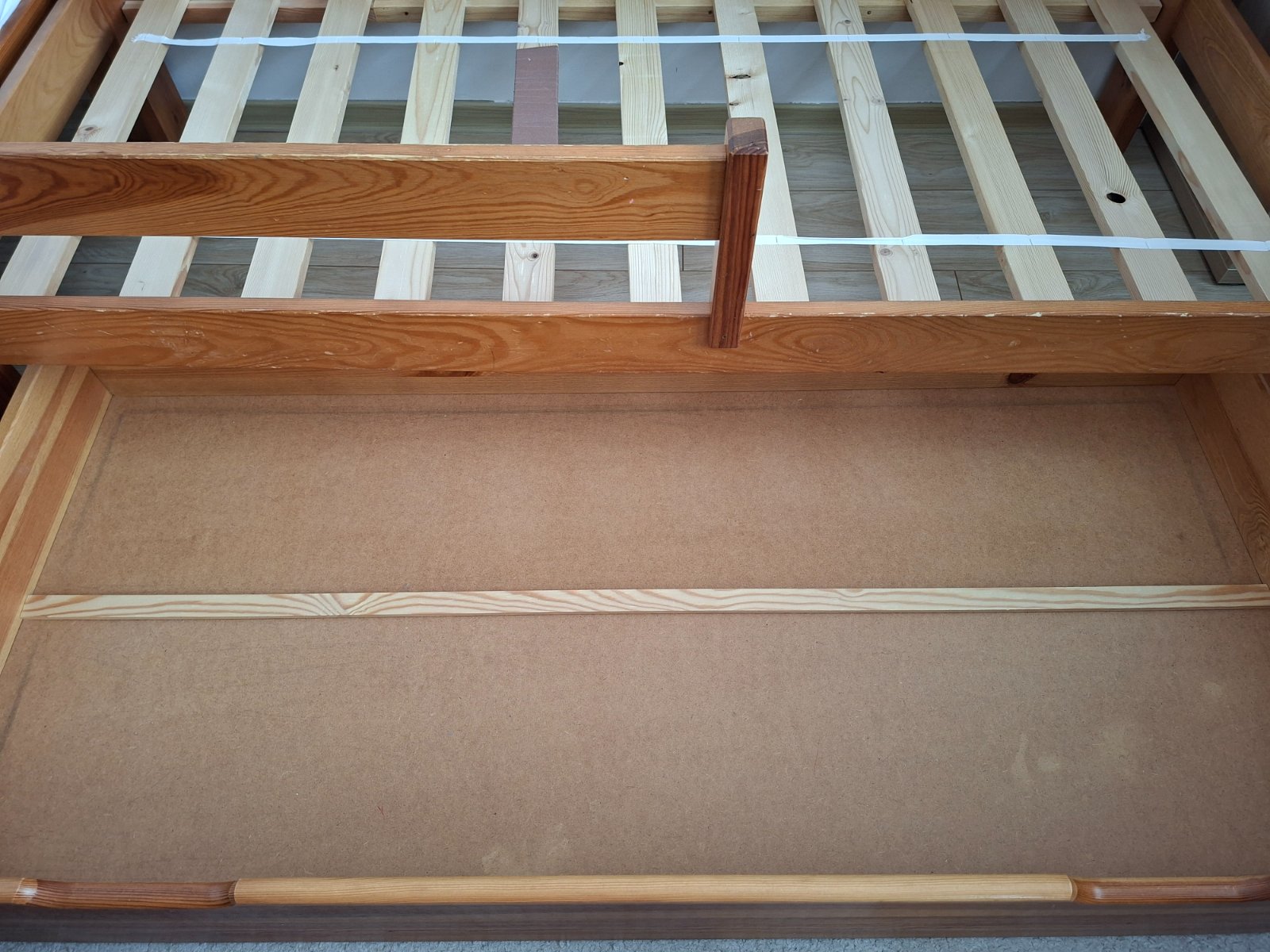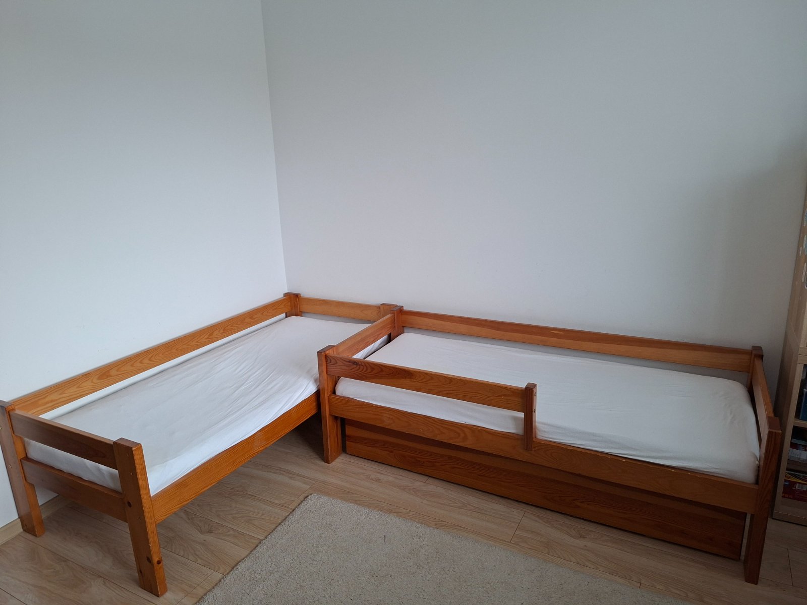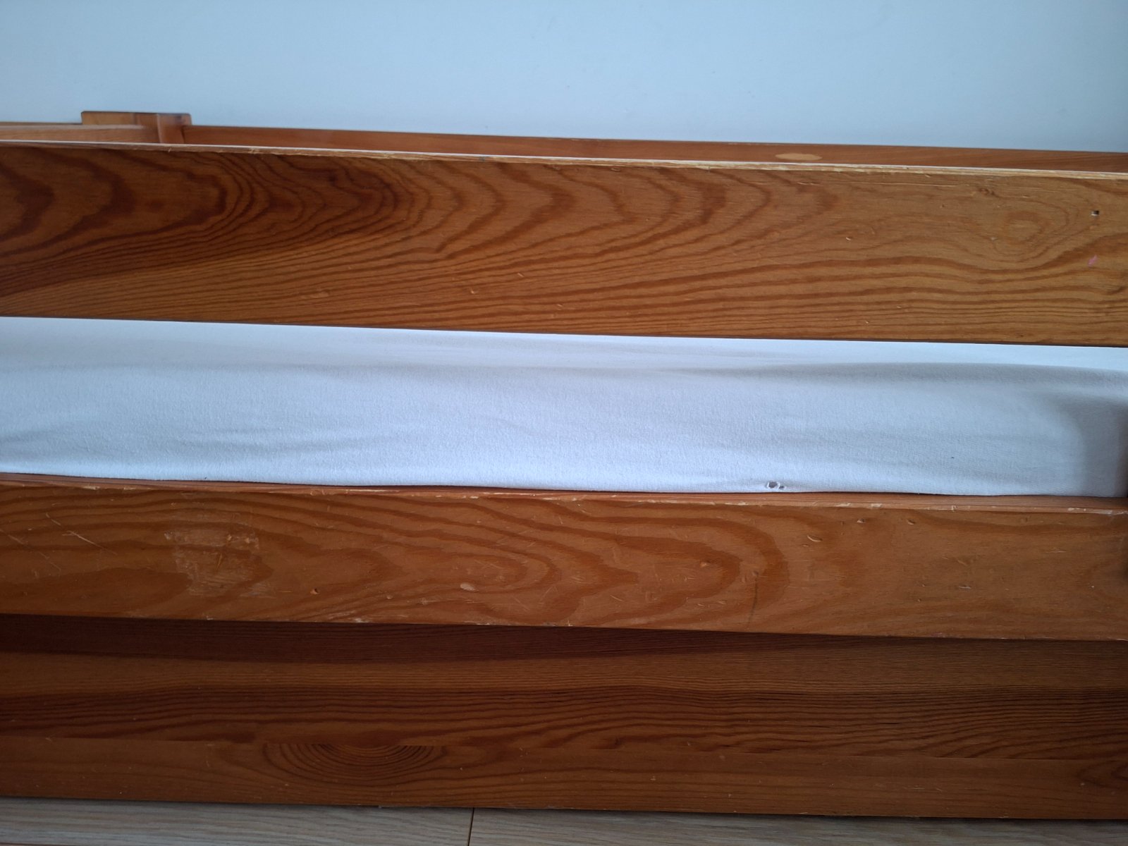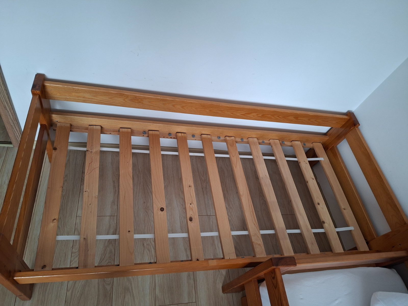 2 postele na dopoužívanie. Iba po našich deťoch. 1 nemá zábranu. Šuflík je pokazený, ale asi by sa to dalo opraviť. Rošt nebol zlomený, iba tam bolo naštiepené drevo.