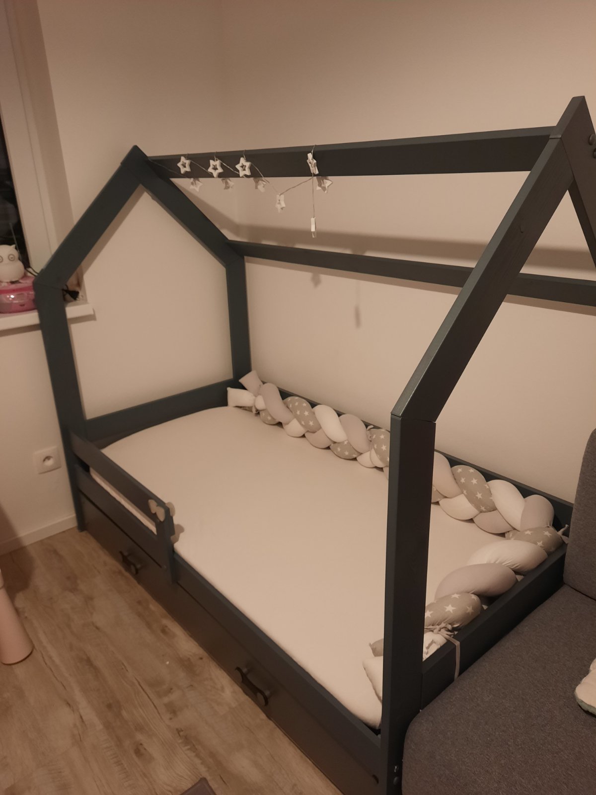 Predam domčekovú detskú posteľ 80×160cm. Matrac si treba dokupit, nakolko na povodnom sa vydral potah. Je stale pouzitelny. Postel je z dreva a ma lamely a velky suflik. Použivana jednym dieťaťom necelé 2 roky. Odvoz najlepšie v dodávke, aby sa nemusela demontovať. Cena 100€.
