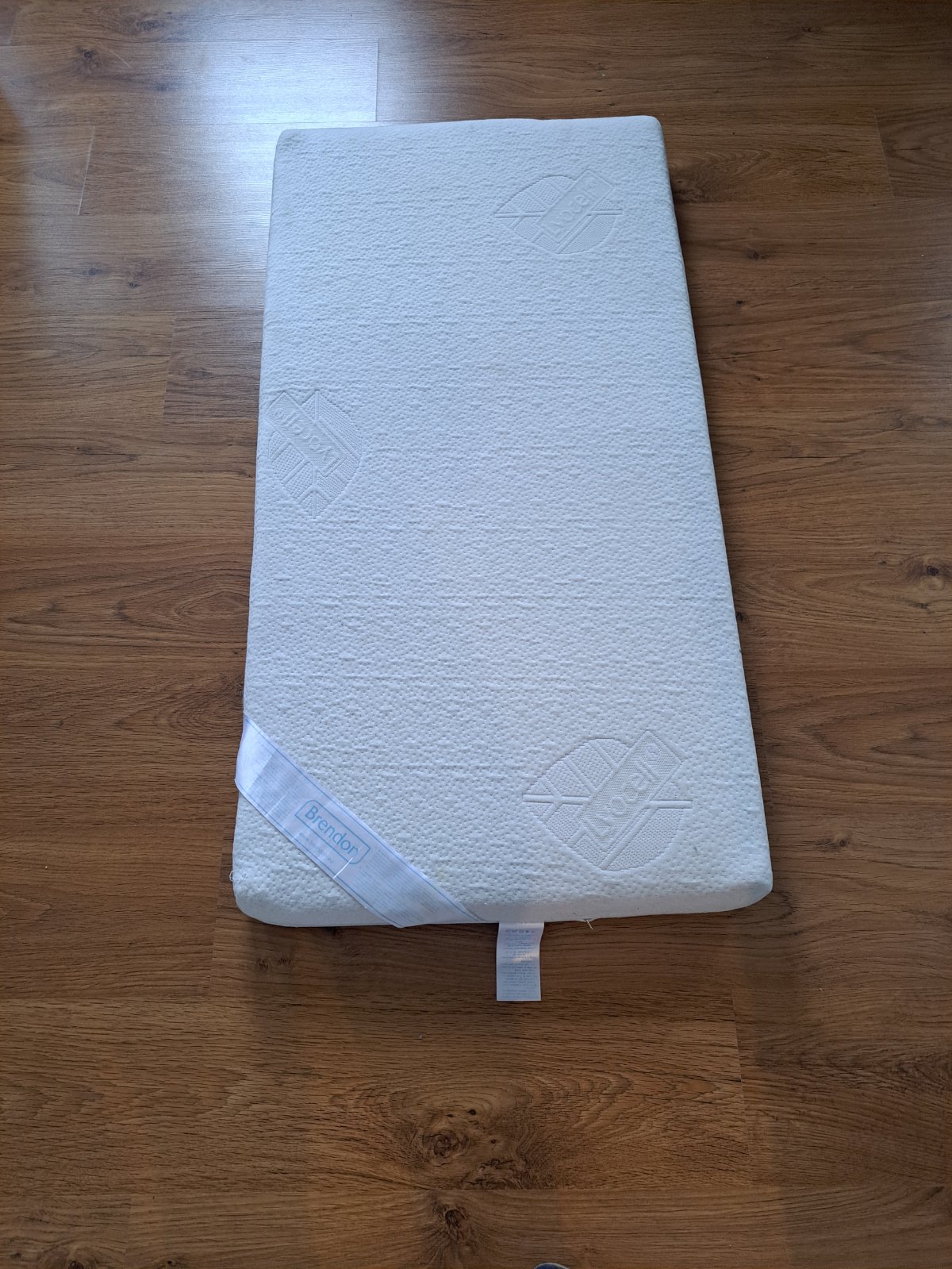 Dormeo matrac do detskej postieľky so soft/hard stranou. 120x60cm. K tomu dve bavlnene obliečky (biela, seda) a dve nepremokavé obliečky (biela, modra).