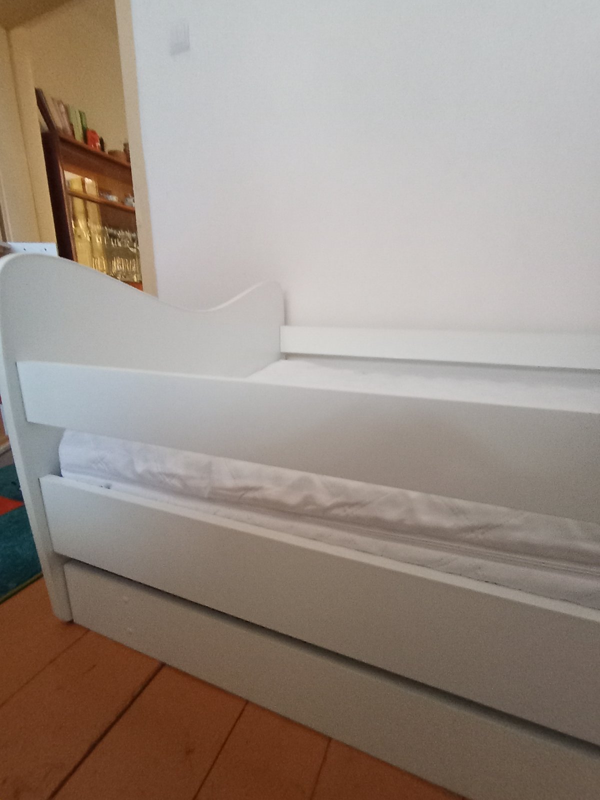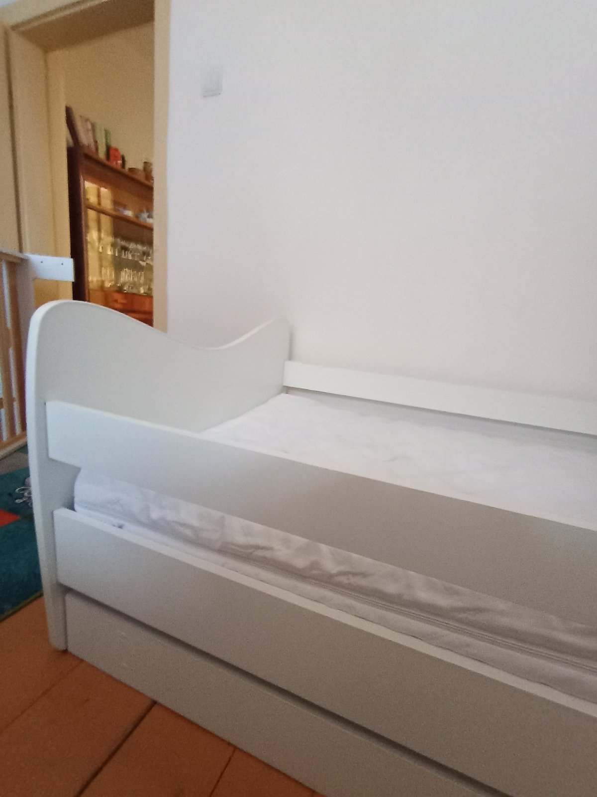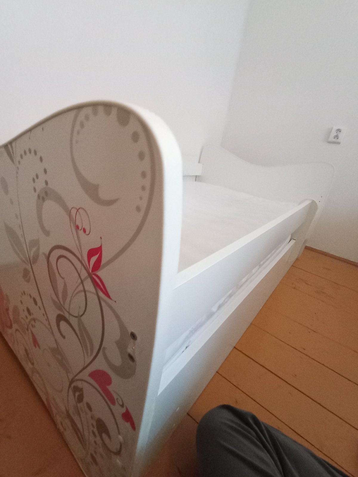 Drevená posteľ malo používaná v zachovalom a velmi dobrom stave s motívom princeznej s princom.pridavam k nej matrac s kokosovým vláknom a na vrchnej časti ľanové guličky na zdravý chrbátik, odnímateľný poťah na pranie. Súčasťou je aj perináč.