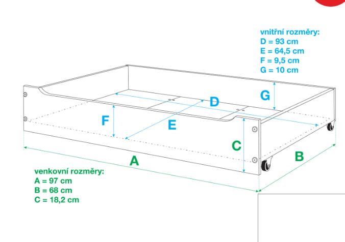 Nová zásuvka pod posteľ, kúpili sme dve v balení, tak jeden máme nazvyš, je to masív smrek, má kolieska. Pod posteľ 2*90 cm úplne v pohode, ešte ostane miesto. My máme v nej lego...