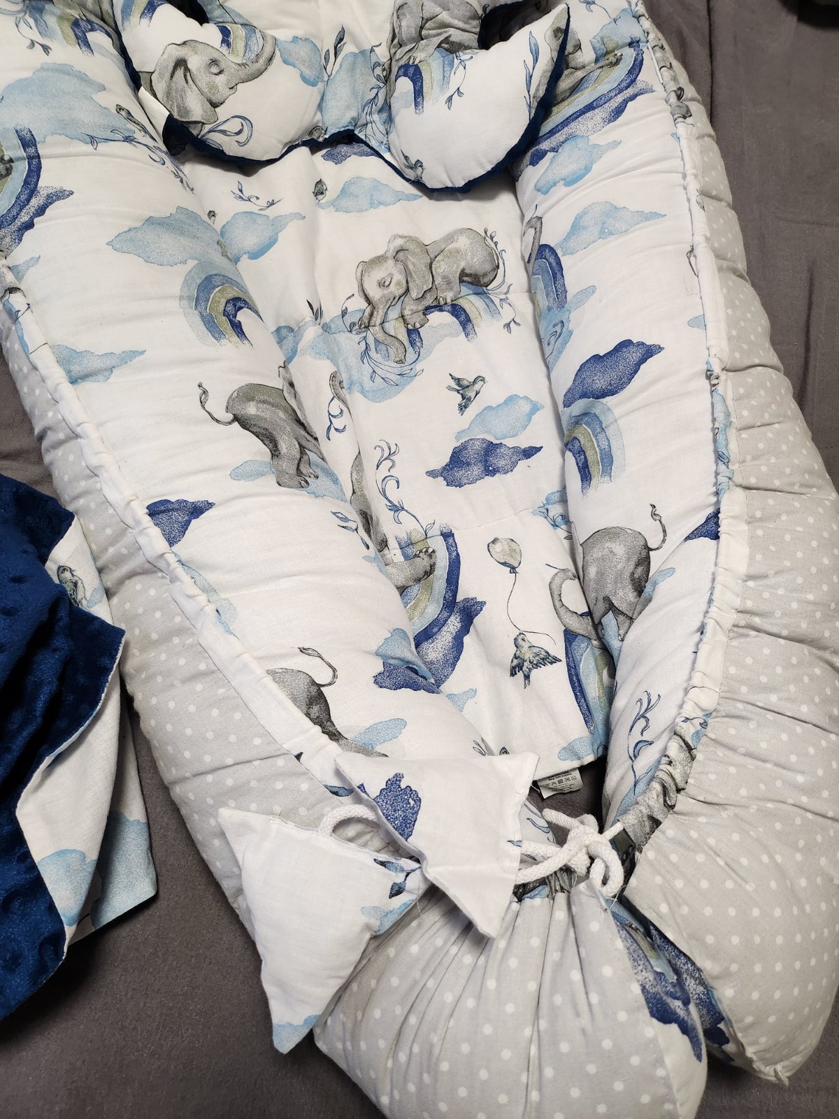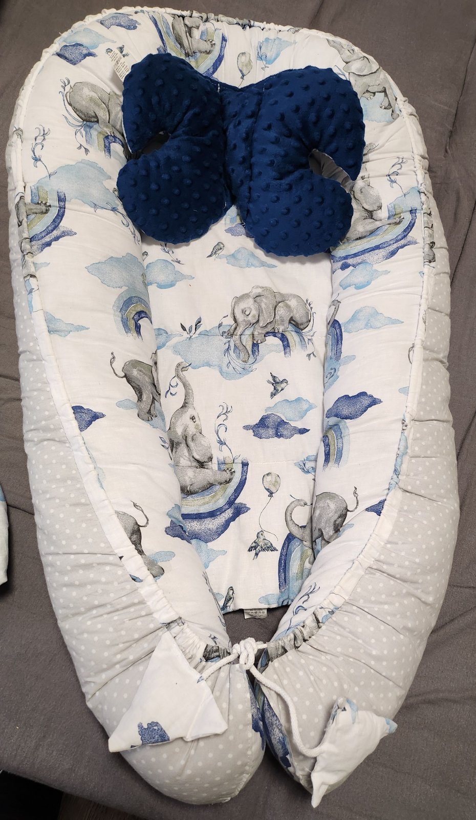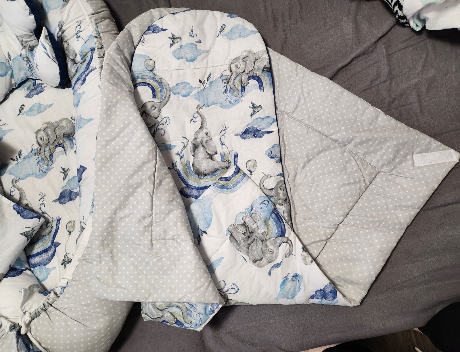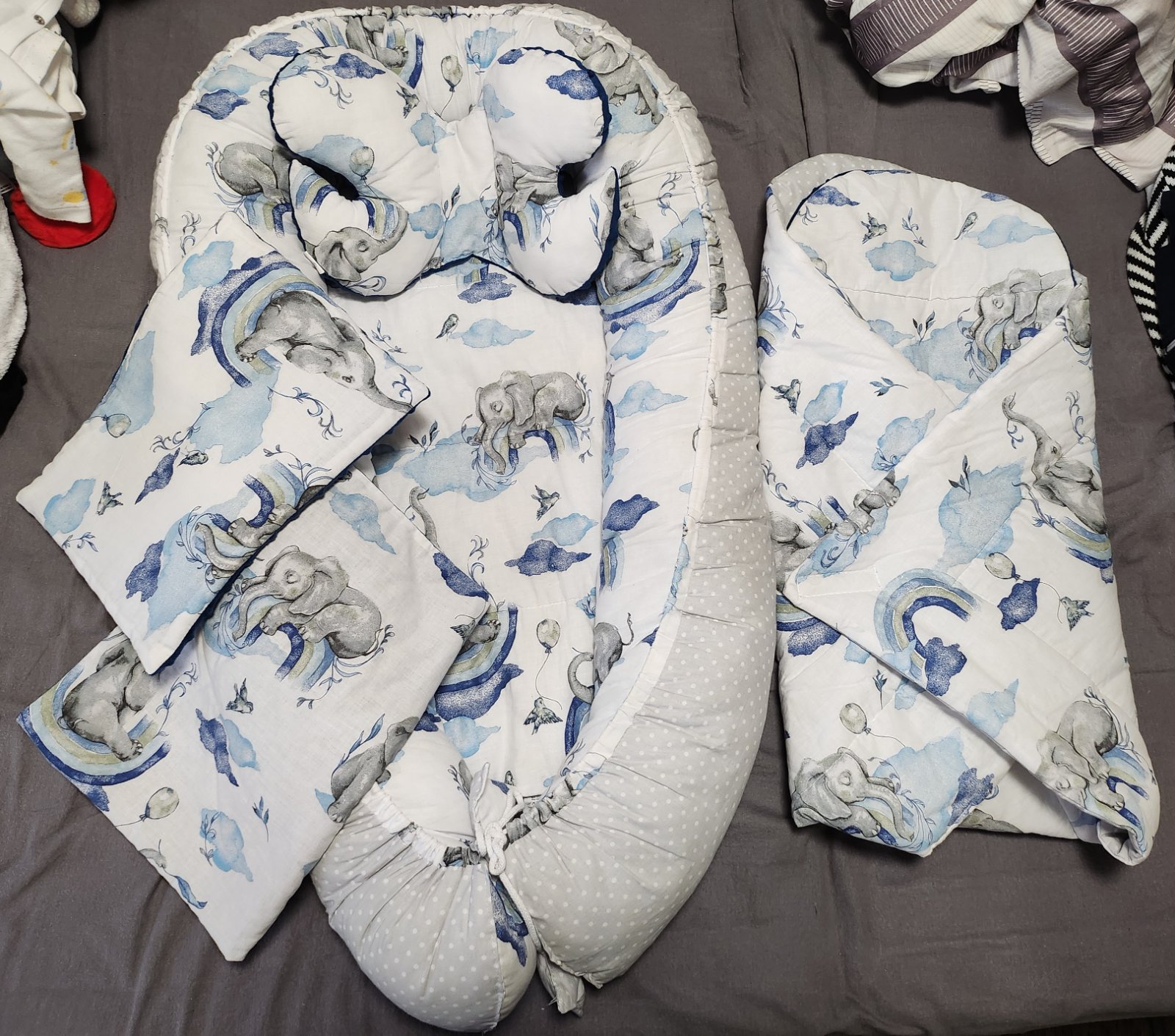 Ako nove, syn v hniezde lezal mozno 5x dokopy. Stale bol pri mne na posteli.. takze tip top. A zavinovacku som nakoniec tiez ani nevyuzila. Z jednej strany minky modra, z druhej sloniky. Nadherny setik