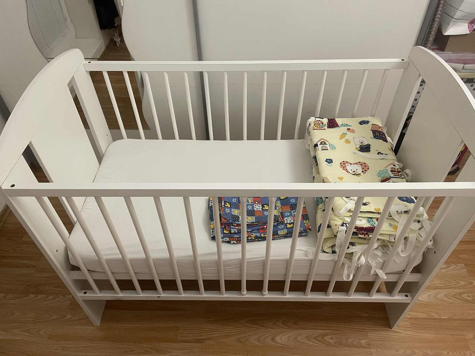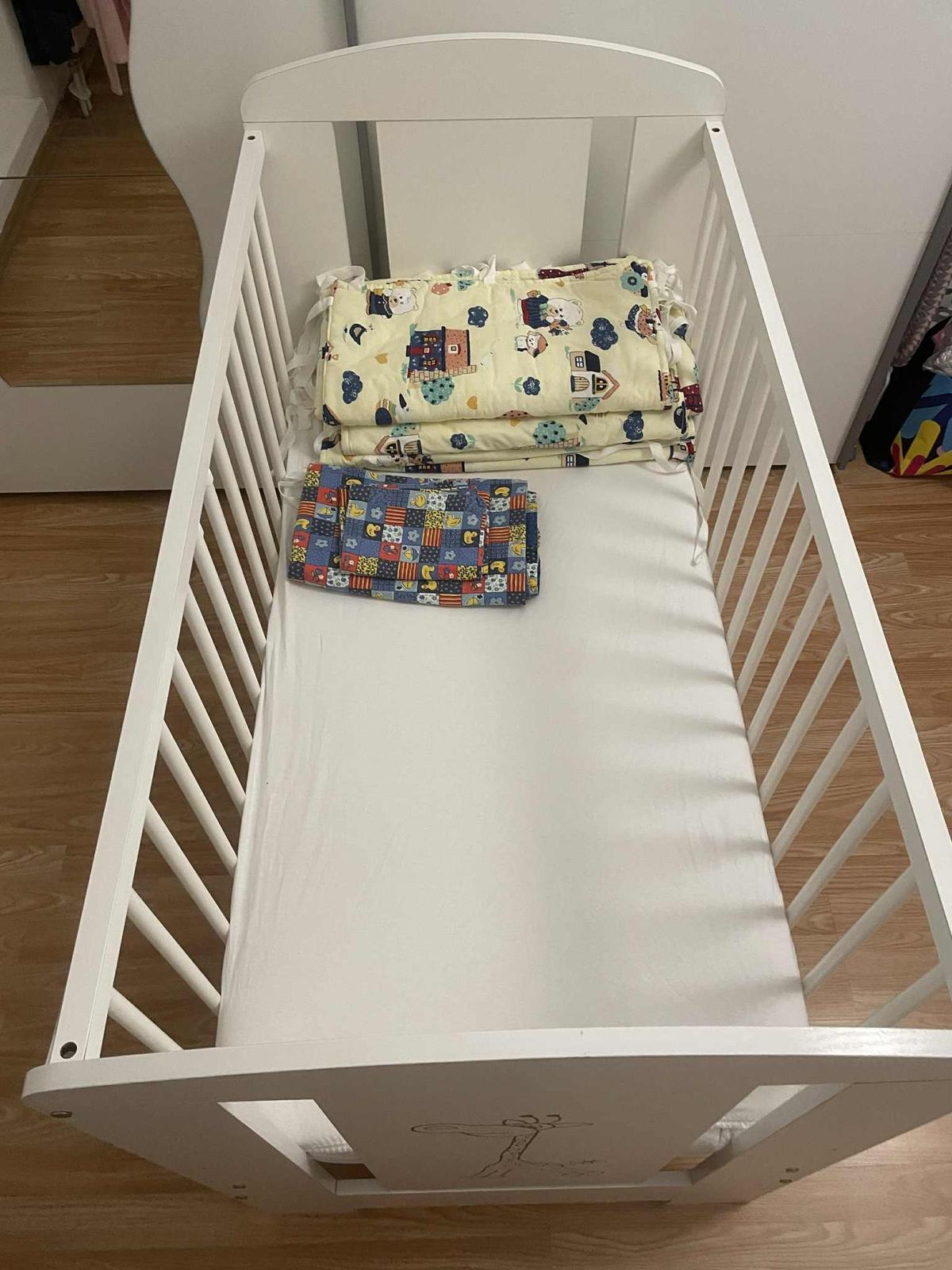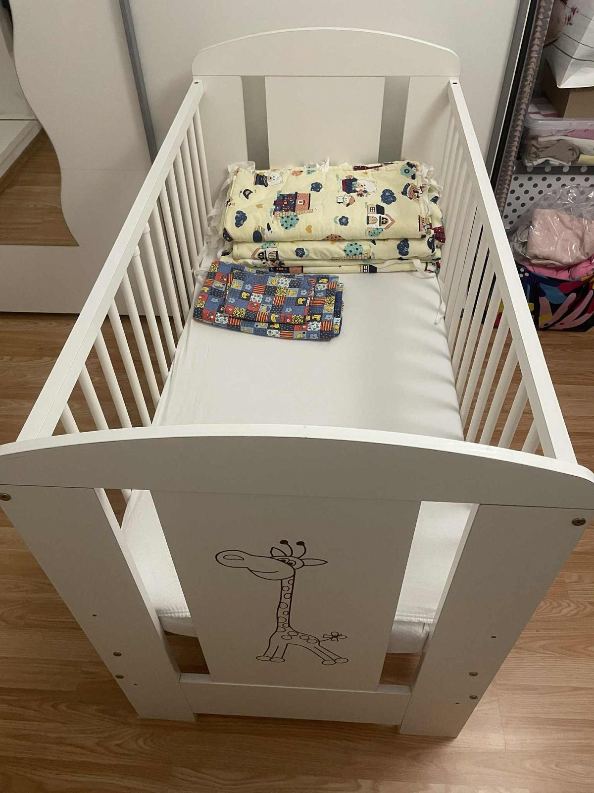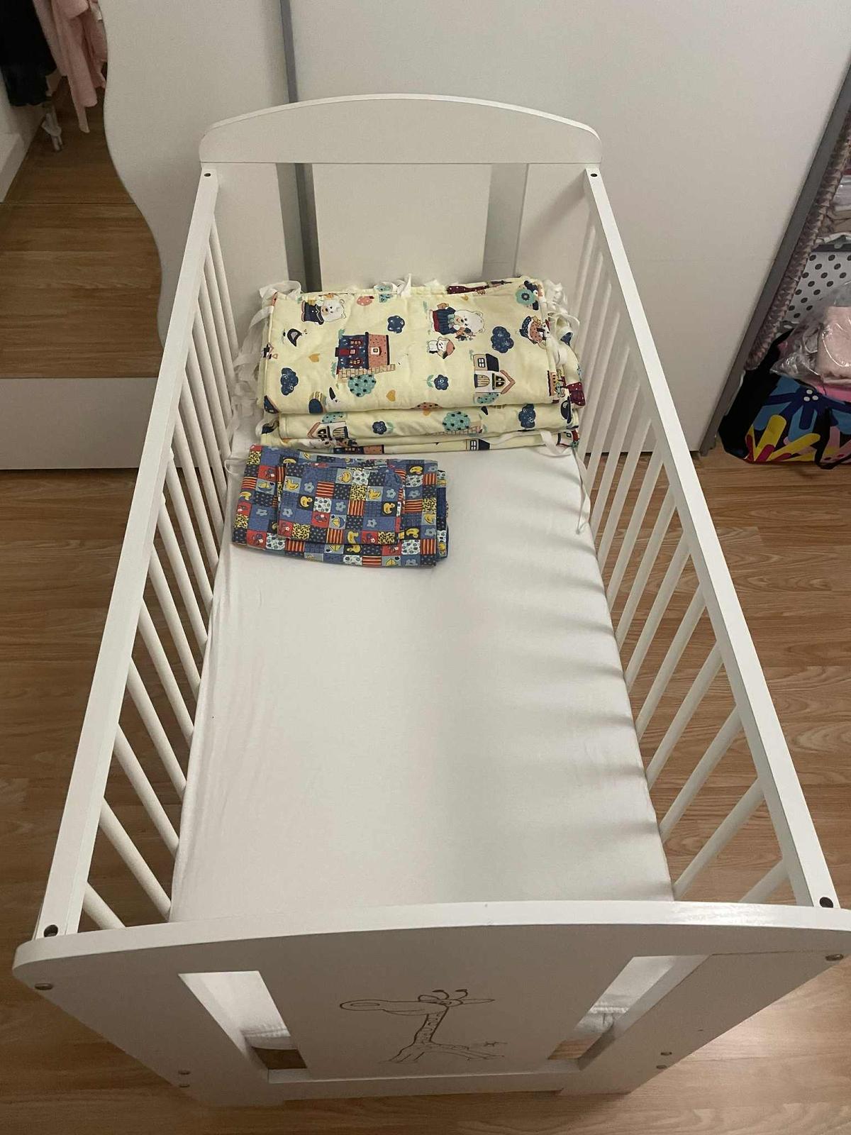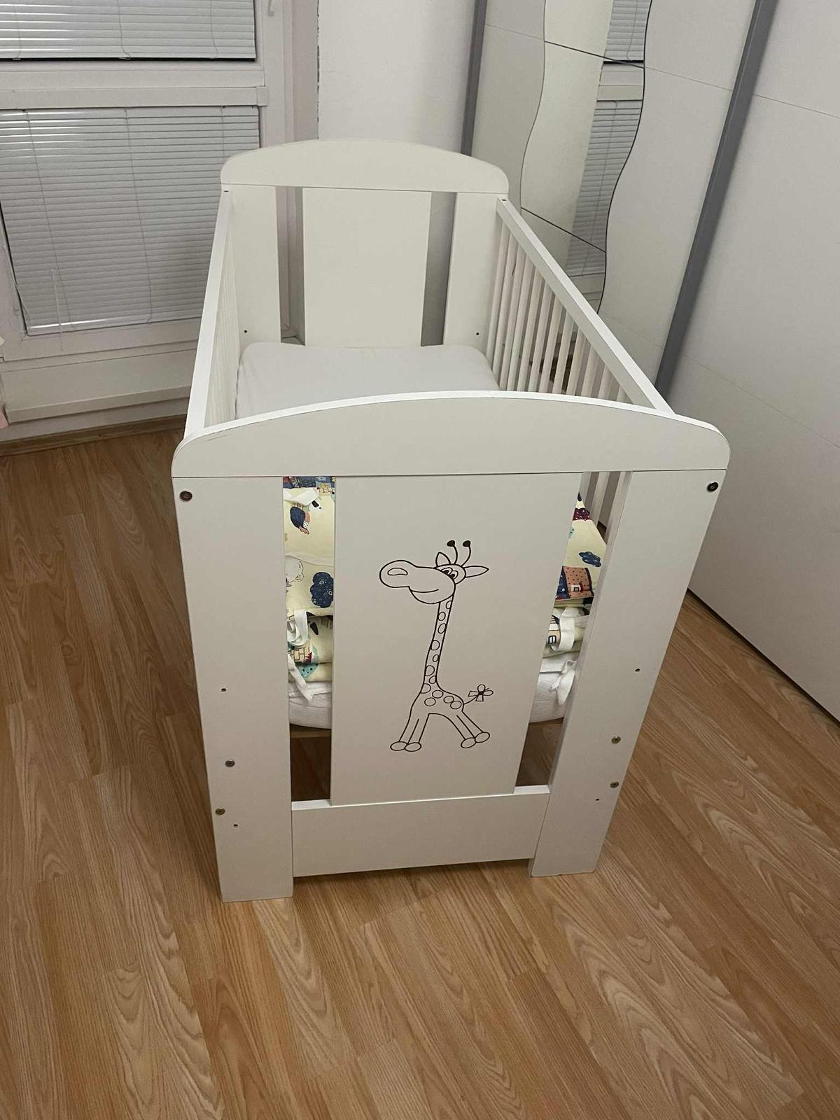 ponúkam na predaj krásnu bielu postieľku so žirafou polohovatelná 3 polohy roštu, 2 vyťahovacie priečky nastaviteľný rošt , súčasťou je kvalitný matrac, baldachyn, ochrana postielky