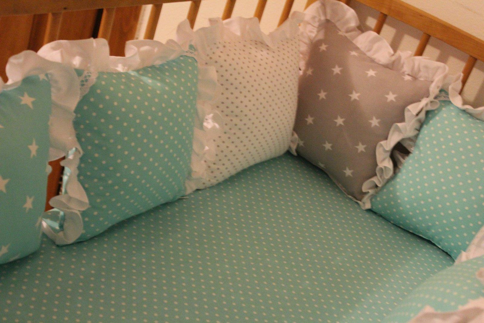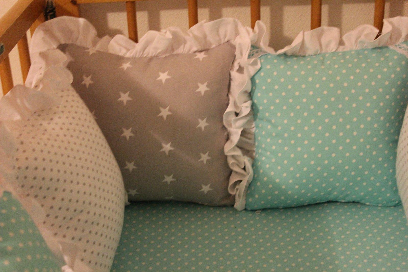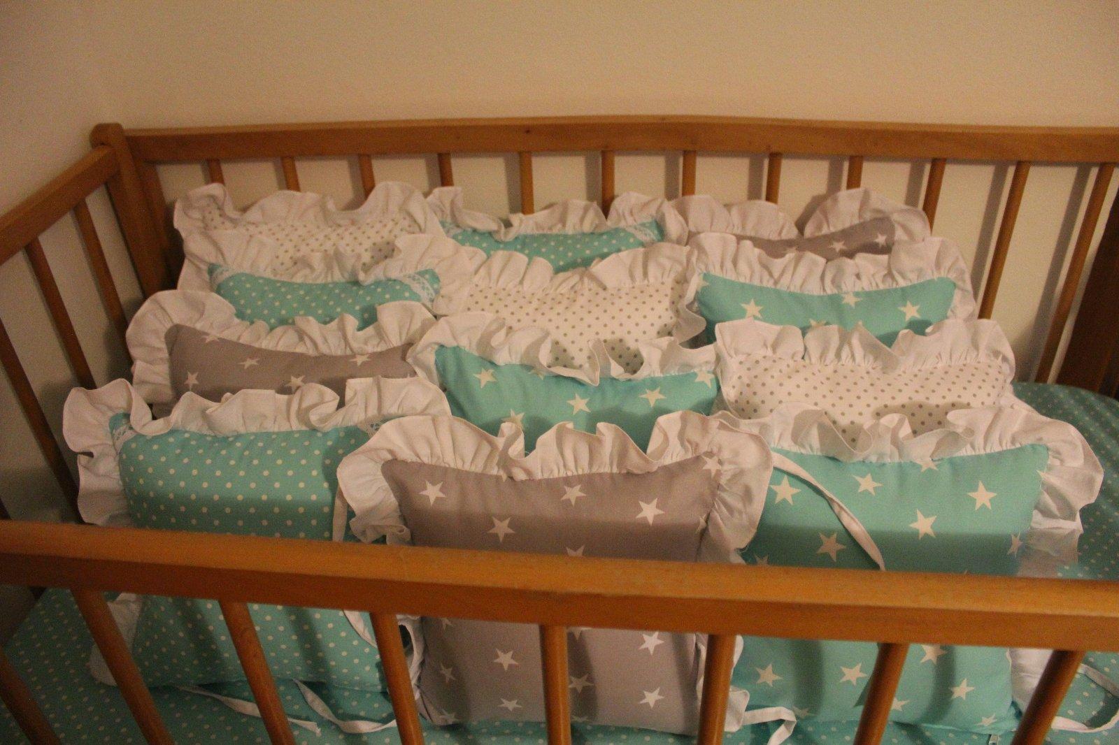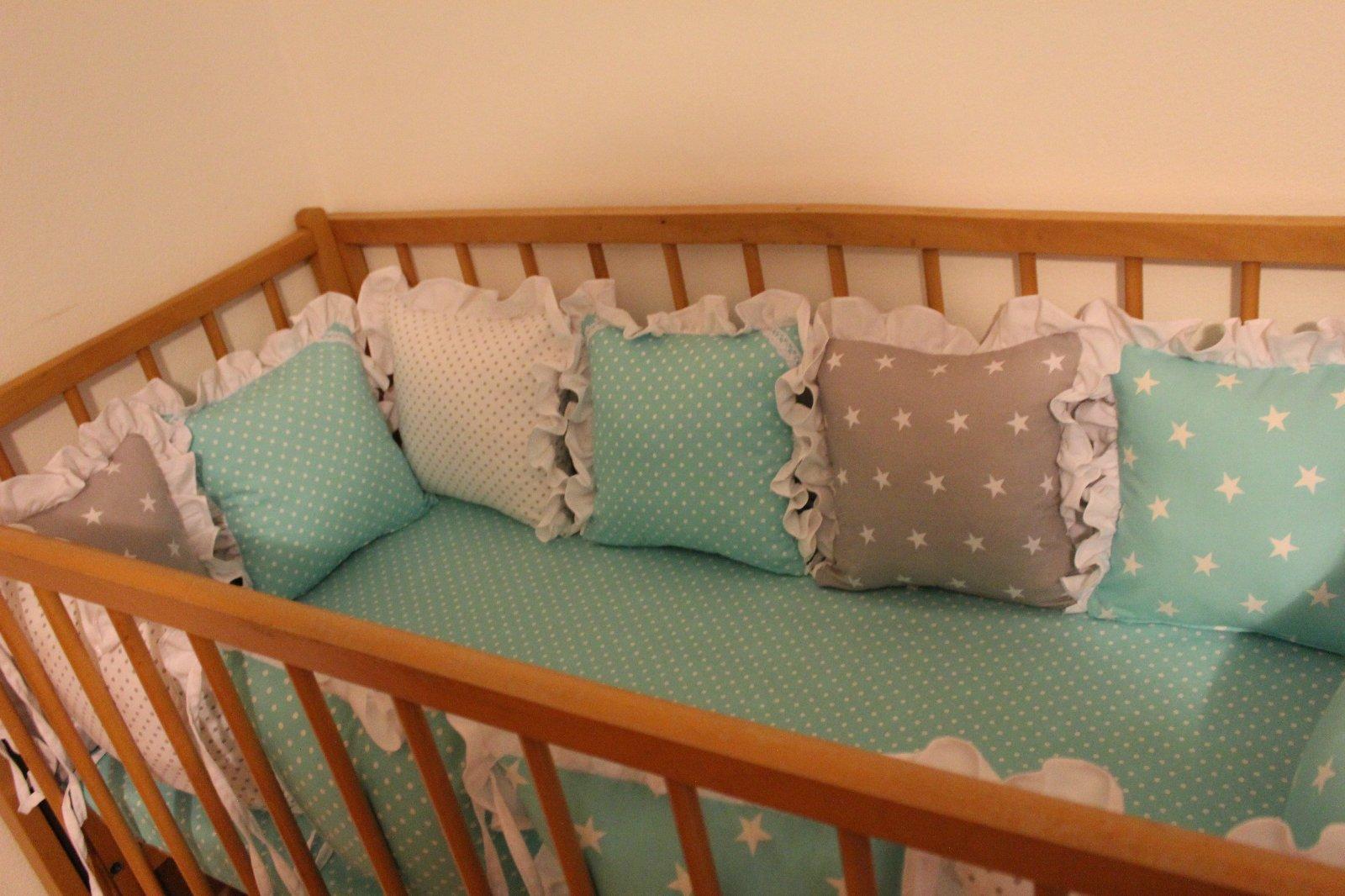 Mantinel zložený z dvanástich vankúšikov, výplň je vyberateľná, náplň antialergické duté vlákno. Farebné prevedenie môžem urobiť aj podľa vašich predstáv.