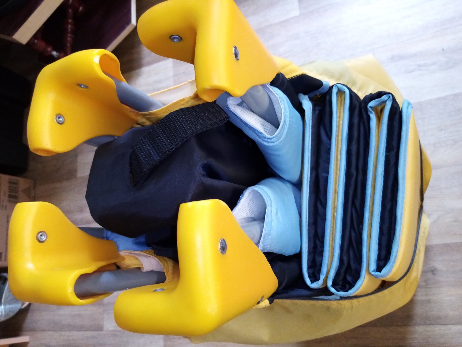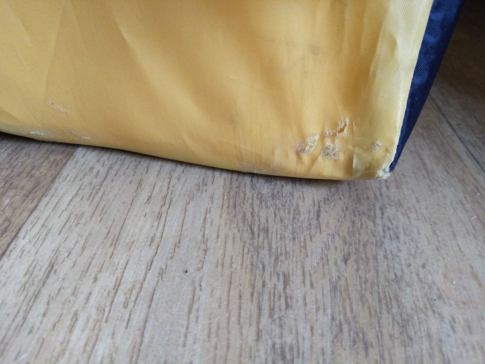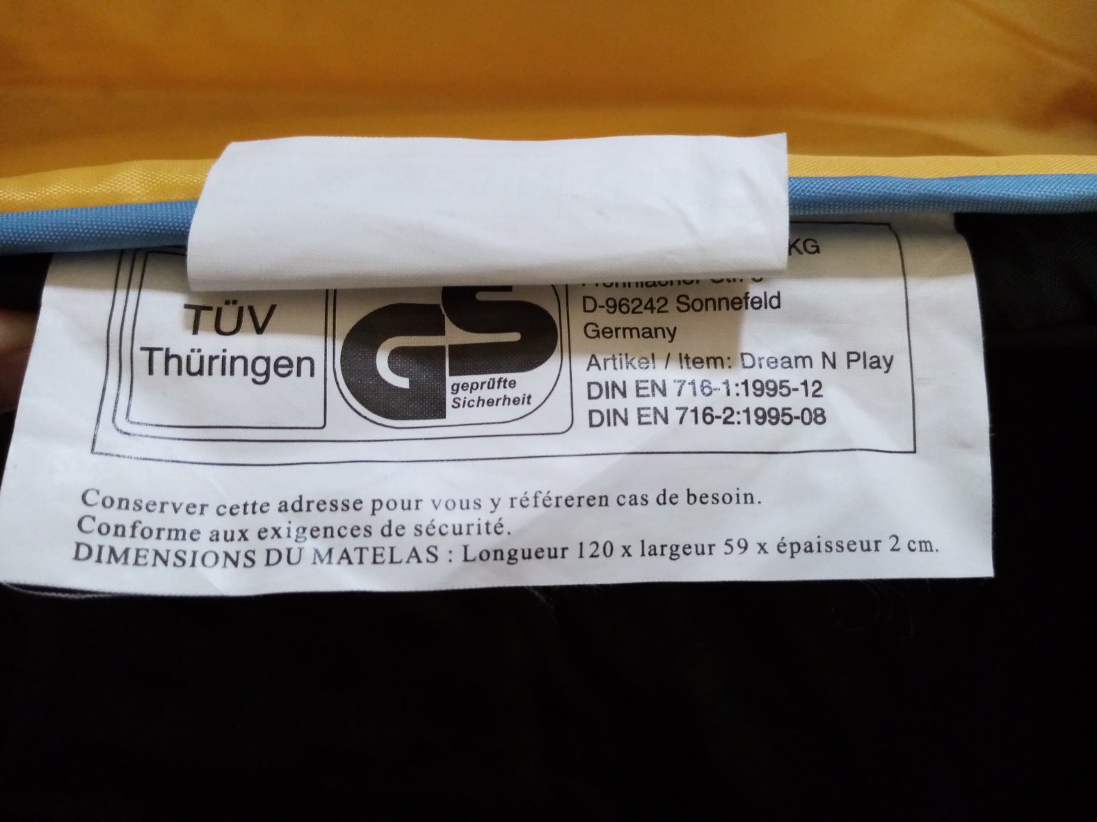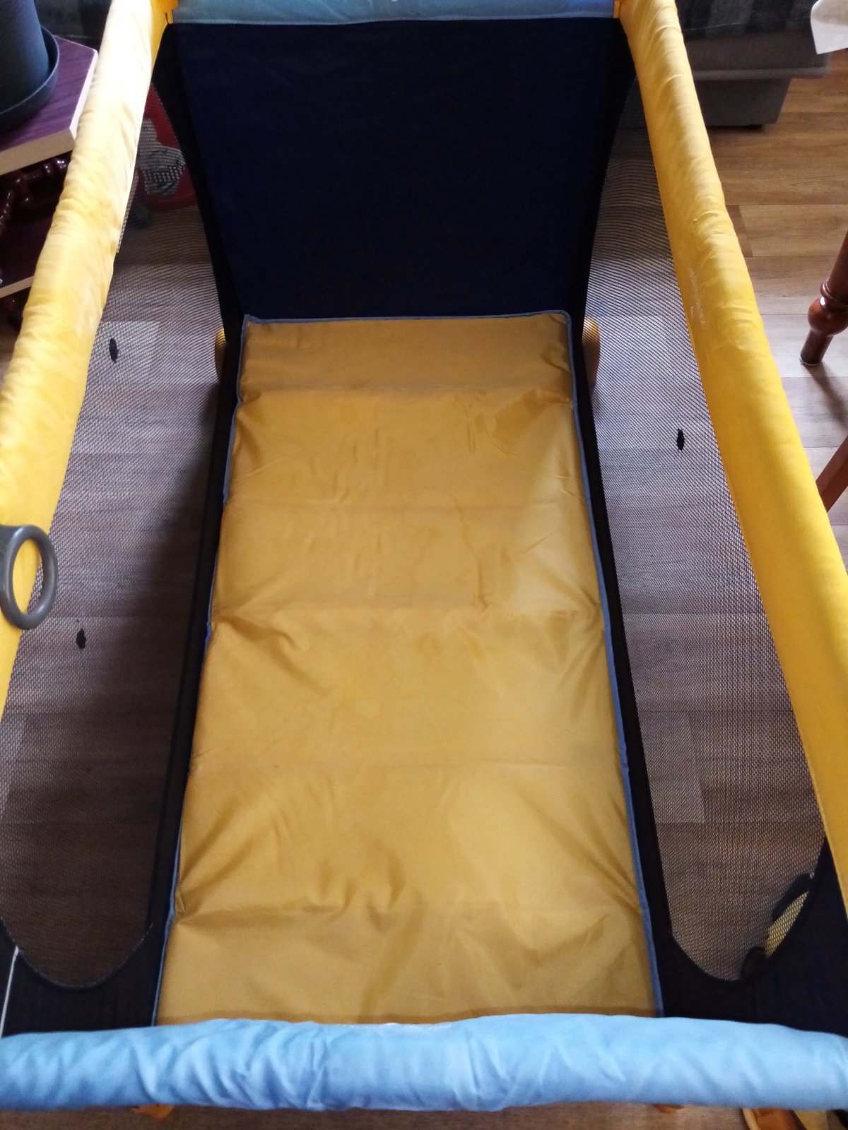 Cestovná postieľka, nefunkčný zips, stranu sme otáčaní k stene. Obal tiež poškodený Cena: 5 eur